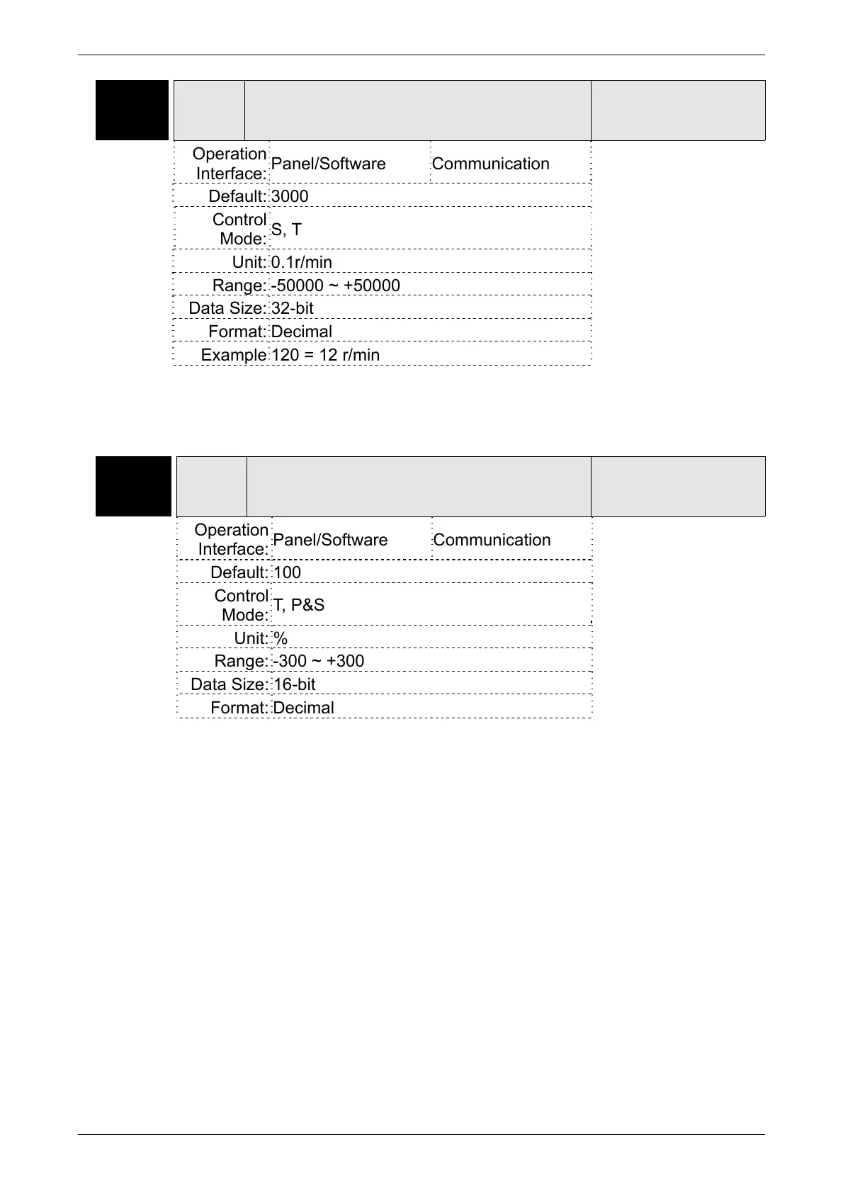 Settings: Internal Speed Command 3: The setting of the third internal speed