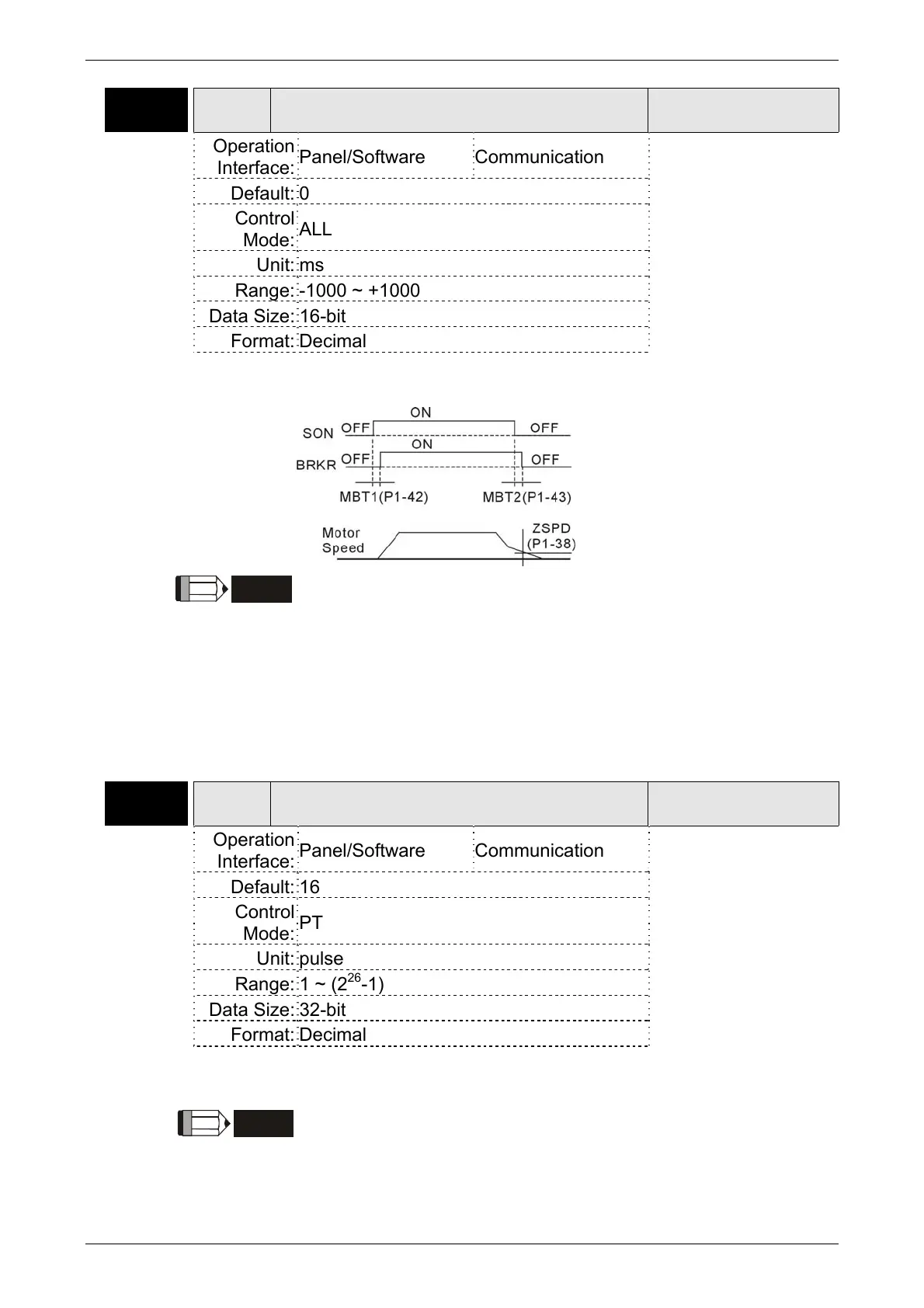(2) If the delay time of P1-43 is up and the motor speed is higher