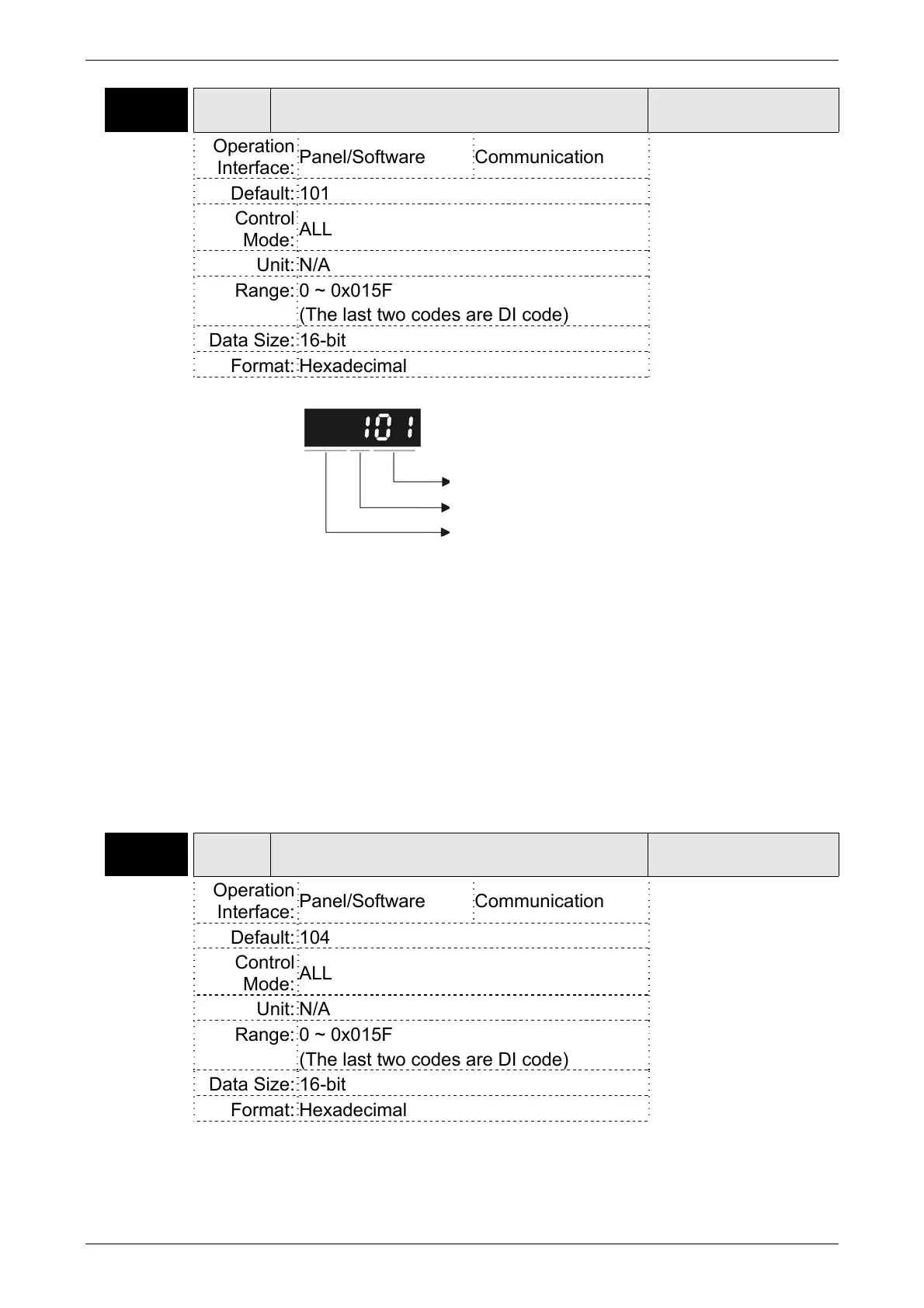 (P2-10 ~ P2-17 and P2-36) The setting value of function