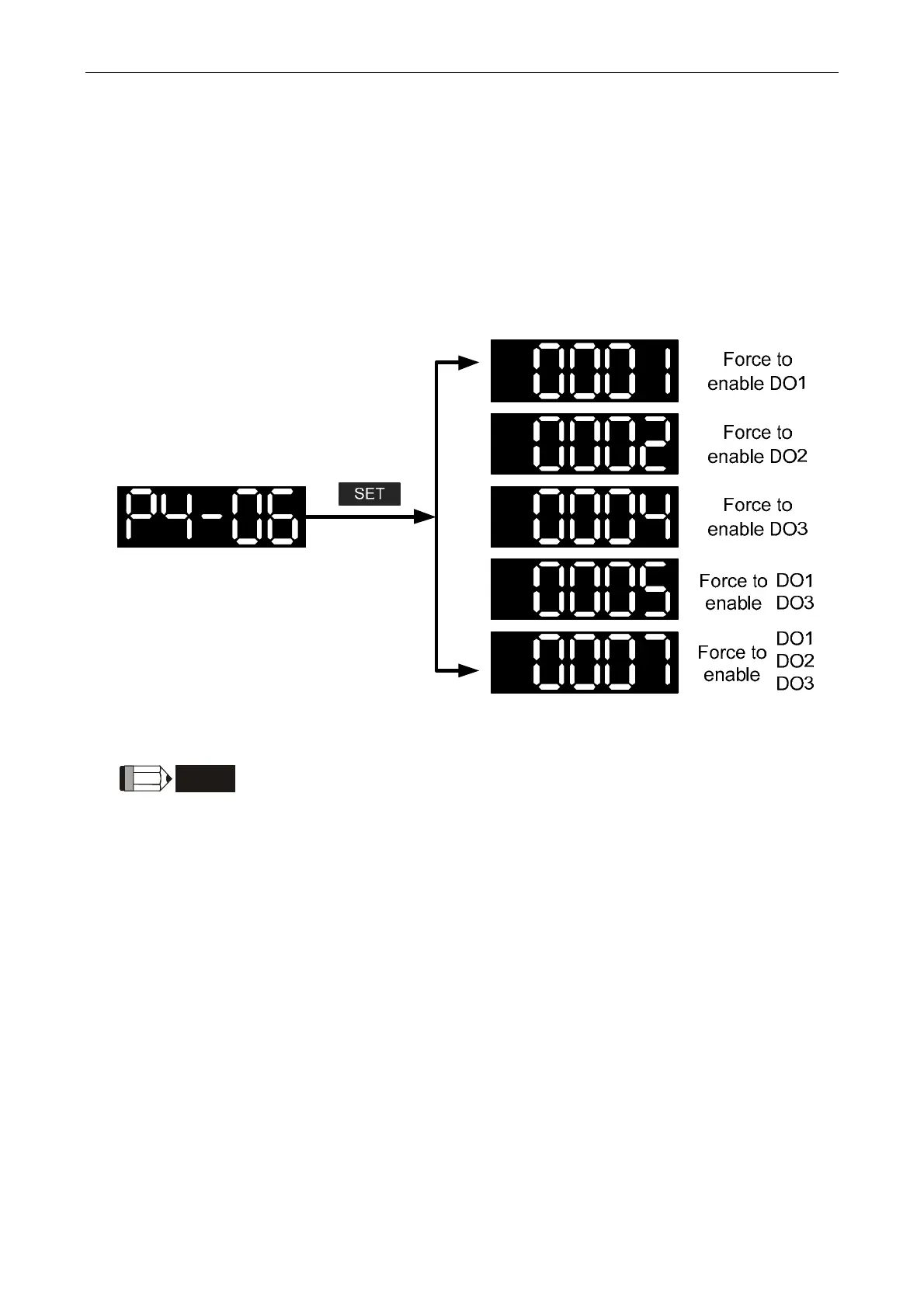 is 2, DO2 will be forced to enable. When the setting value is 5, DO1 and DO3 will be forced