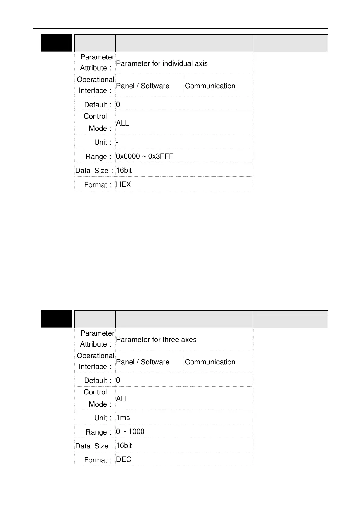 Parameter for individual axis
