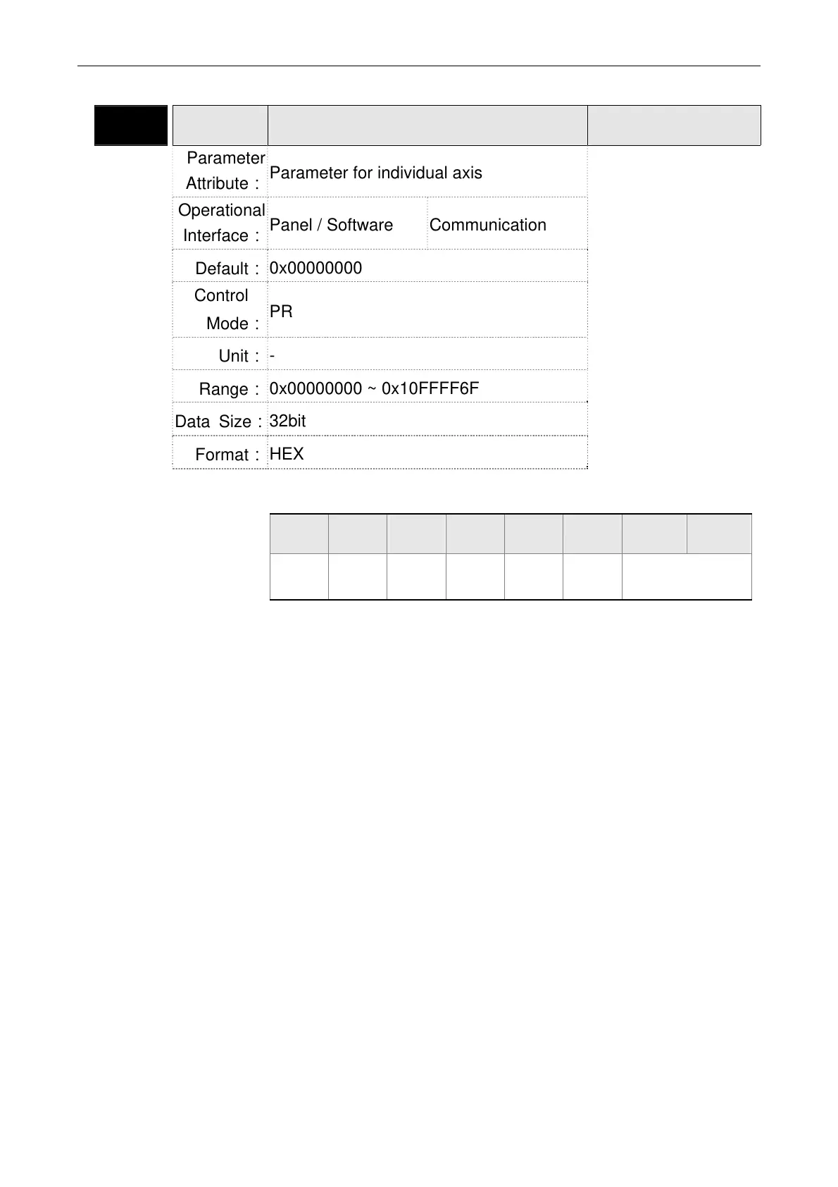 Parameter for individual axis