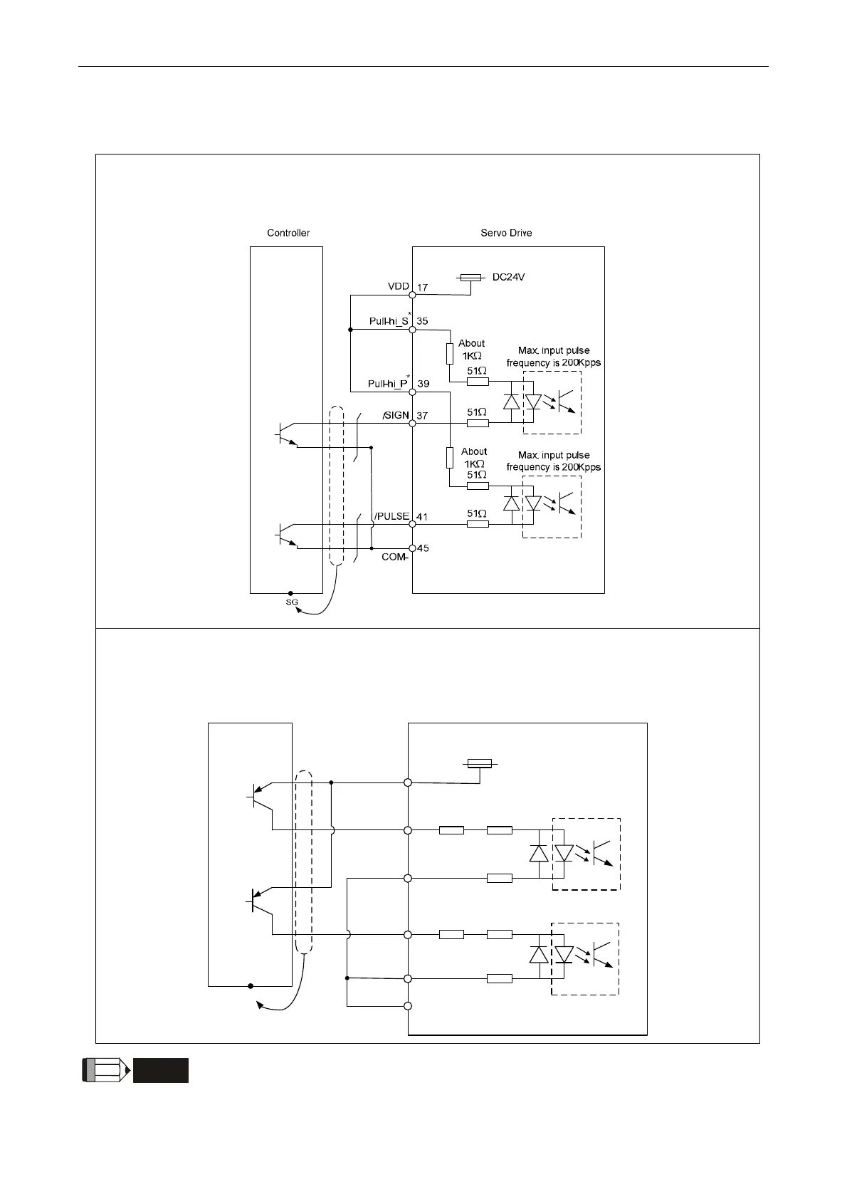 Pulse command can be input by the way of open-collector or Line driver. The maximum