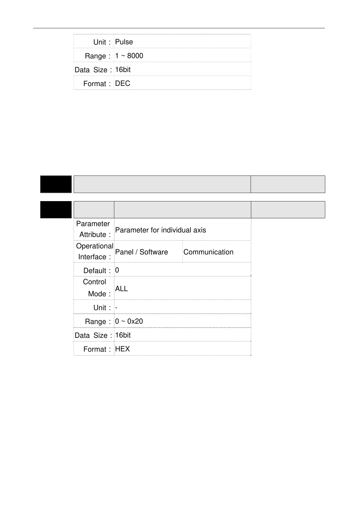 Parameter for individual axis