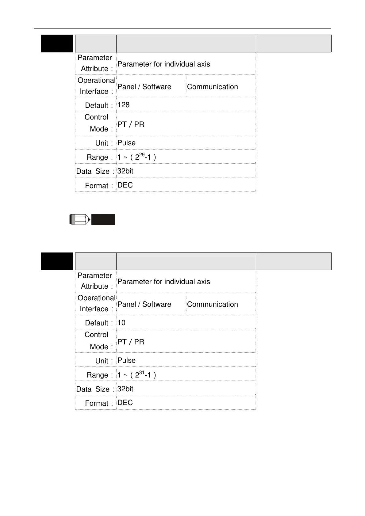 2) In PR mode, the setting value can be changed when Servo