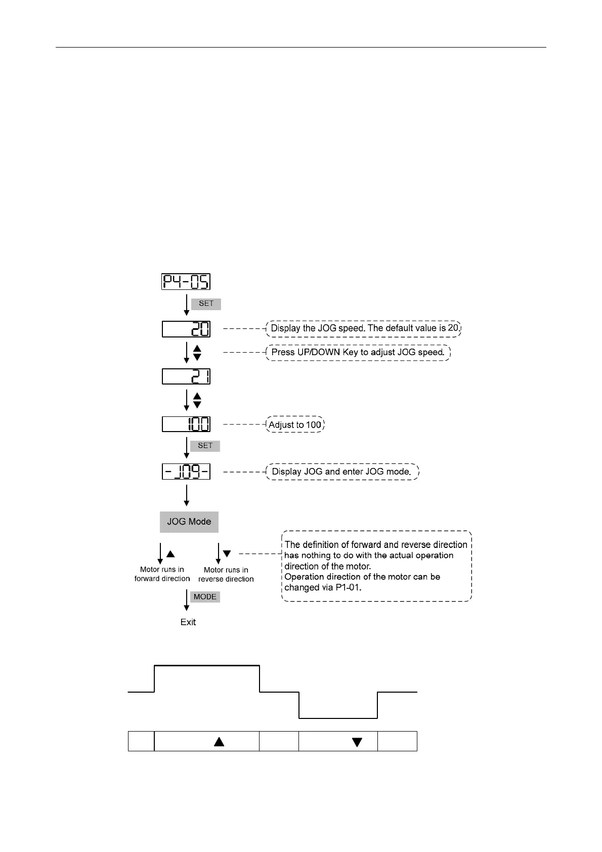 STEP 2: Set P4-05 as JOG speed (unit: r/min). After setting the desired JOG speed, press