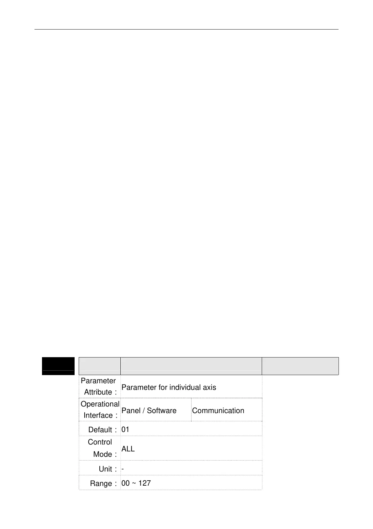 Parameter for individual axis