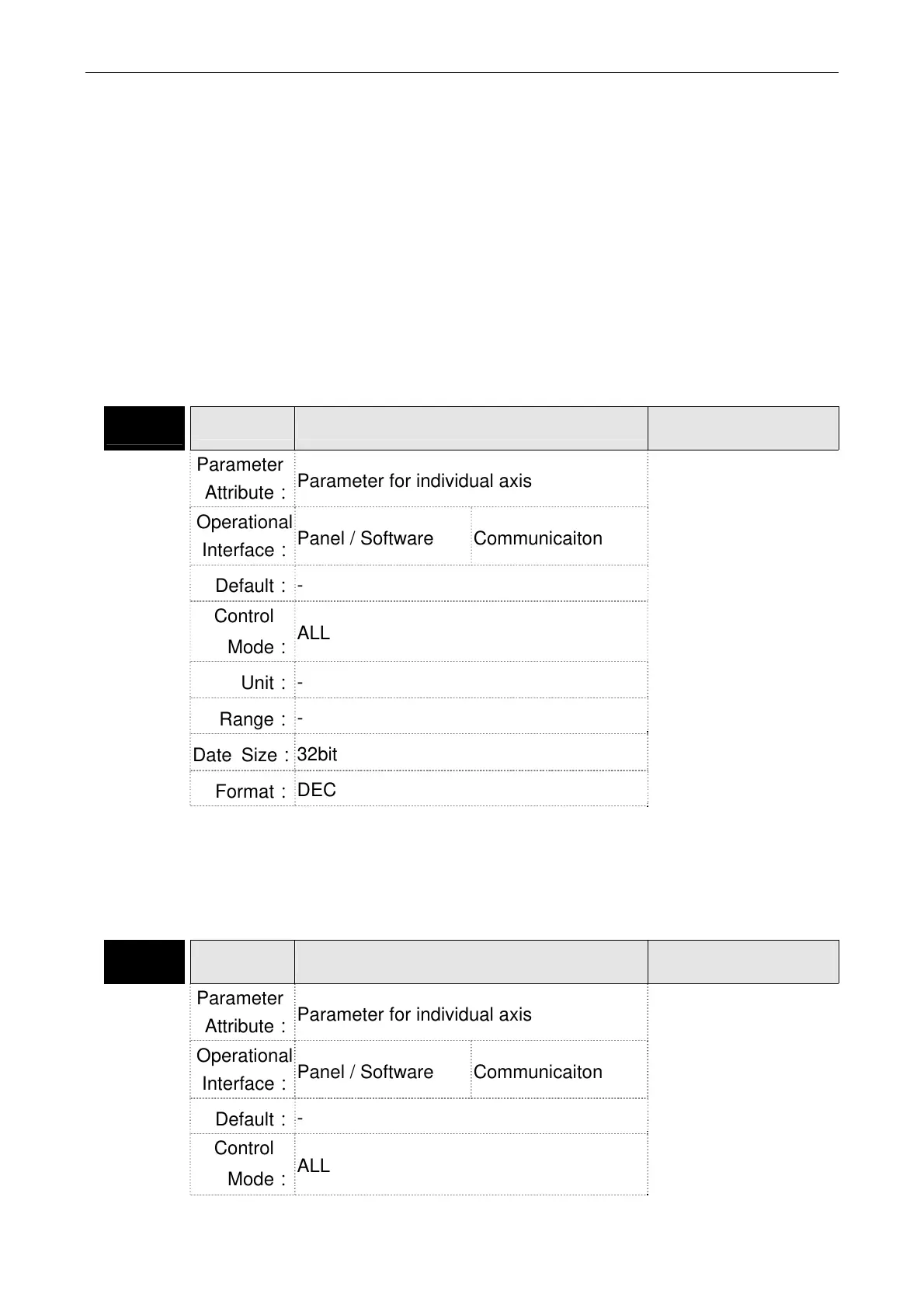 Parameter for individual axis