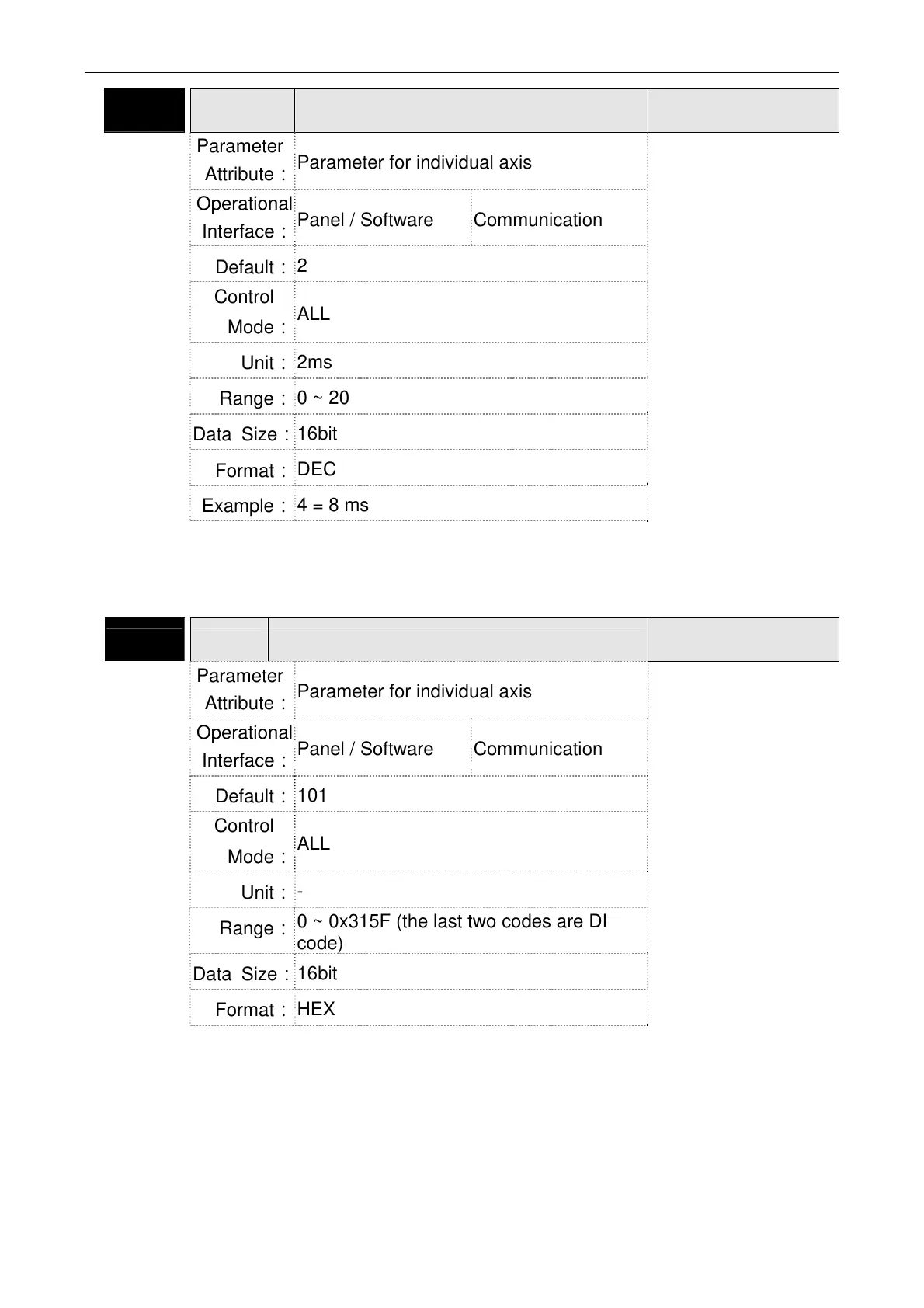 Parameter for individual axis