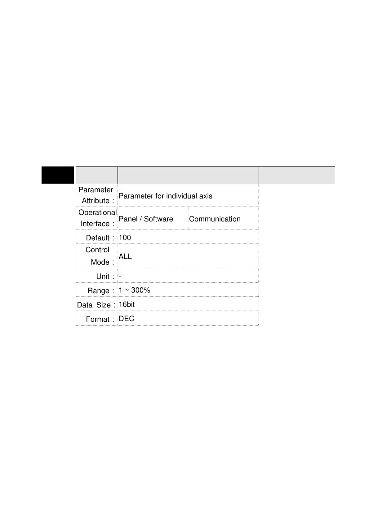 Parameter for individual axis