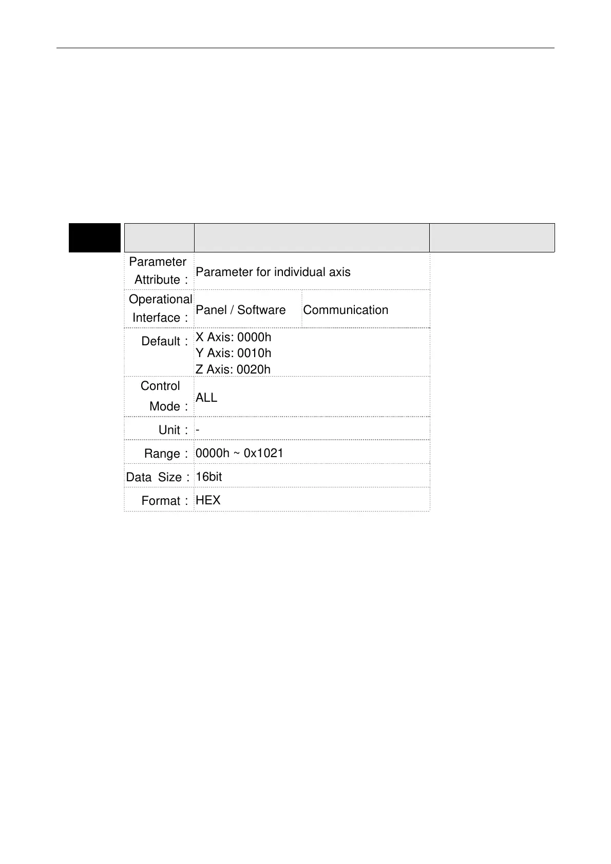 Parameter for individual axis