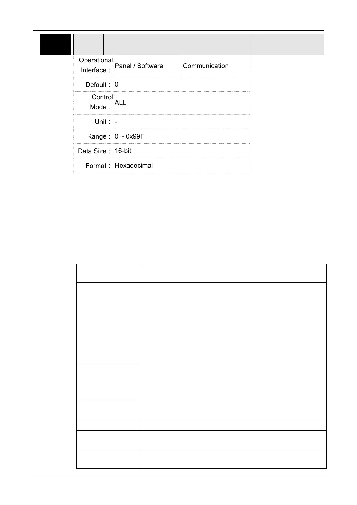 Macro parameters P5-93= Parameter write-protected level (0~1) (0 means no