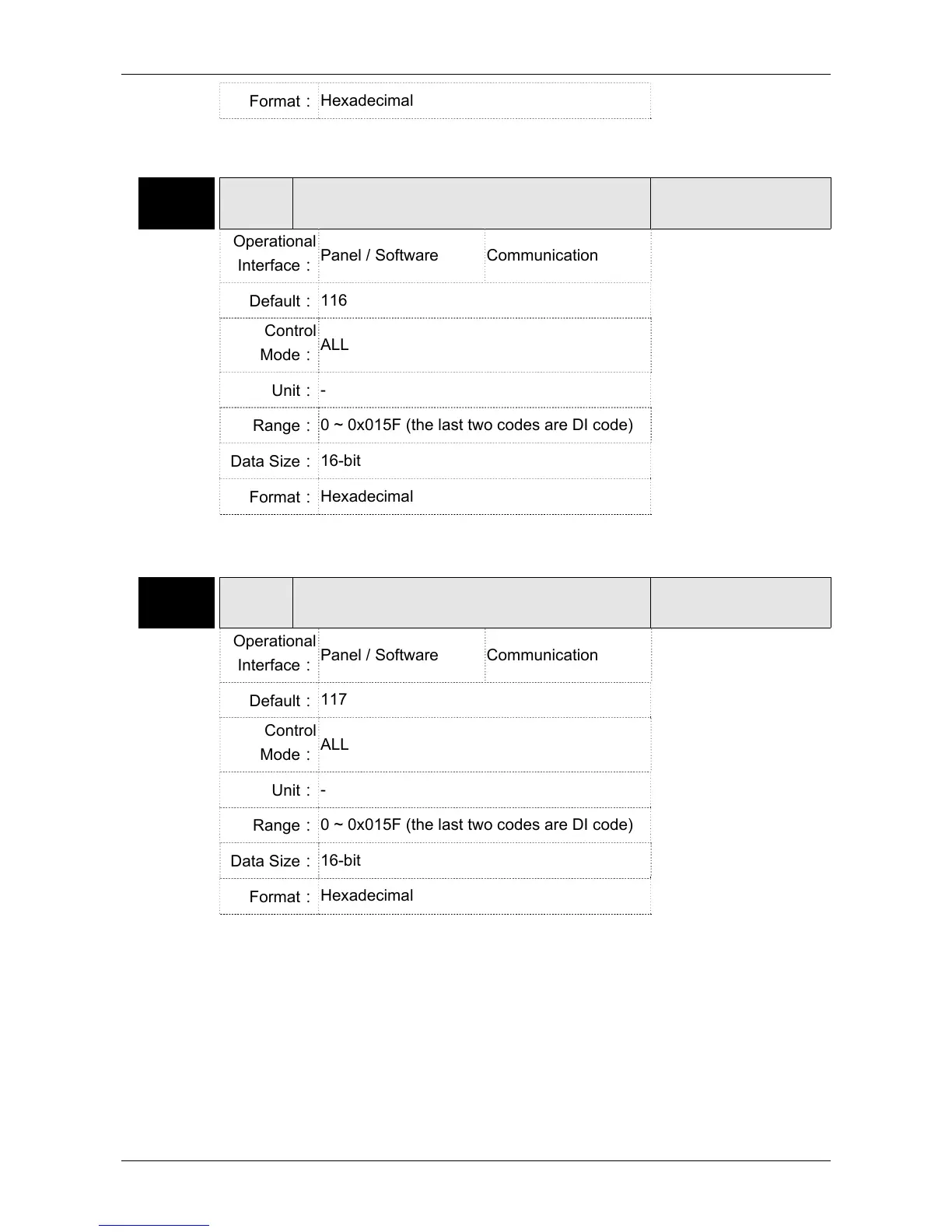 0 ~ 0x015F (the last two codes are DI code)
