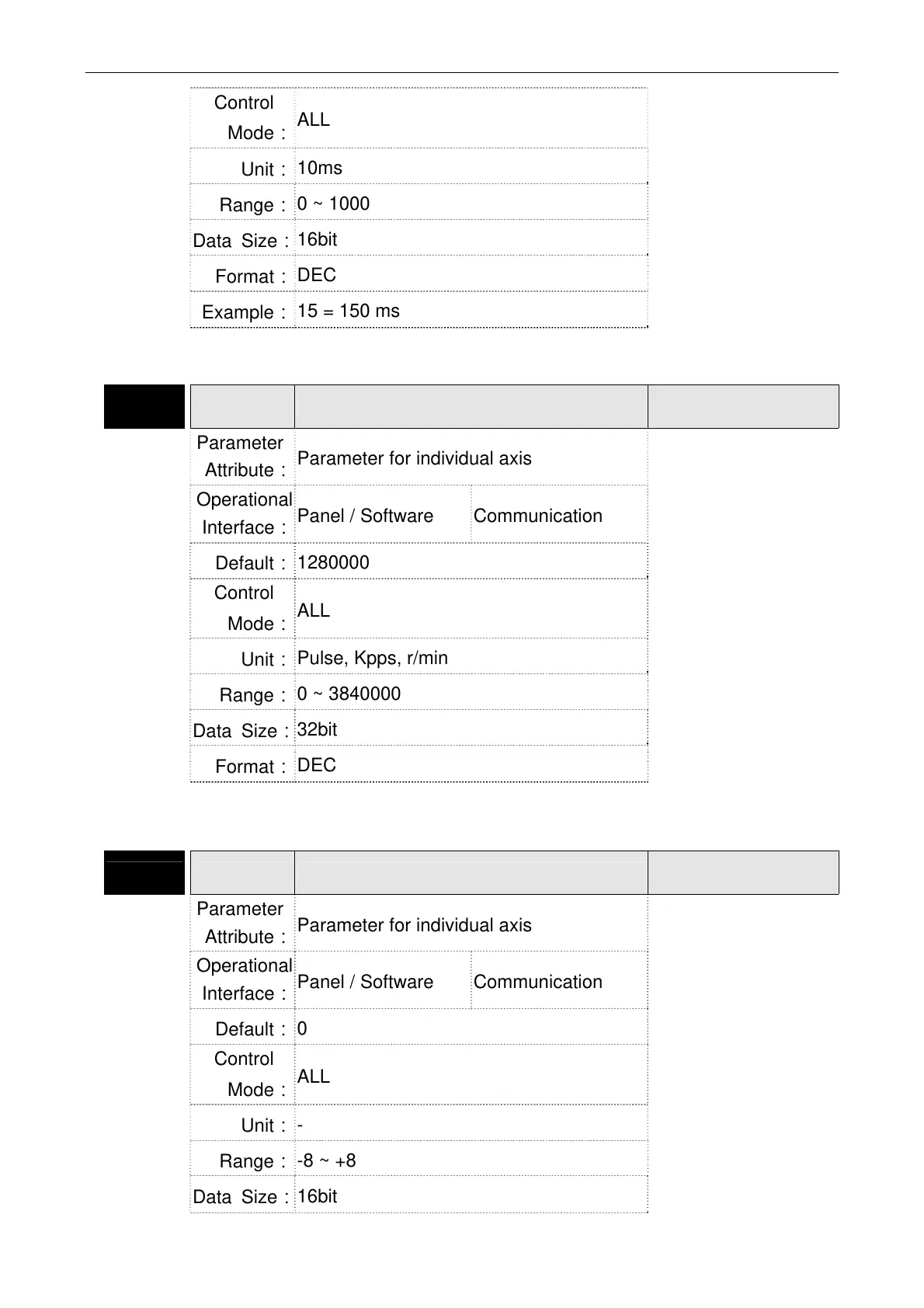 Parameter for individual axis