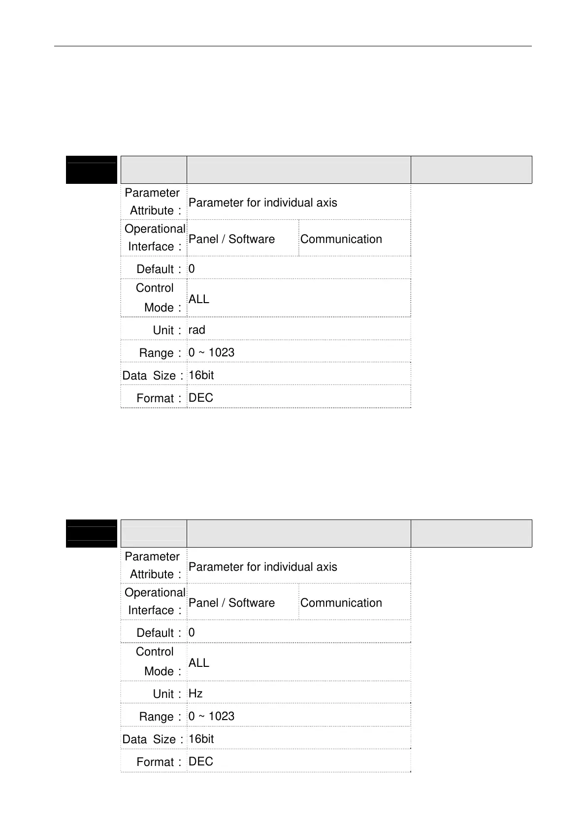 Parameter for individual axis