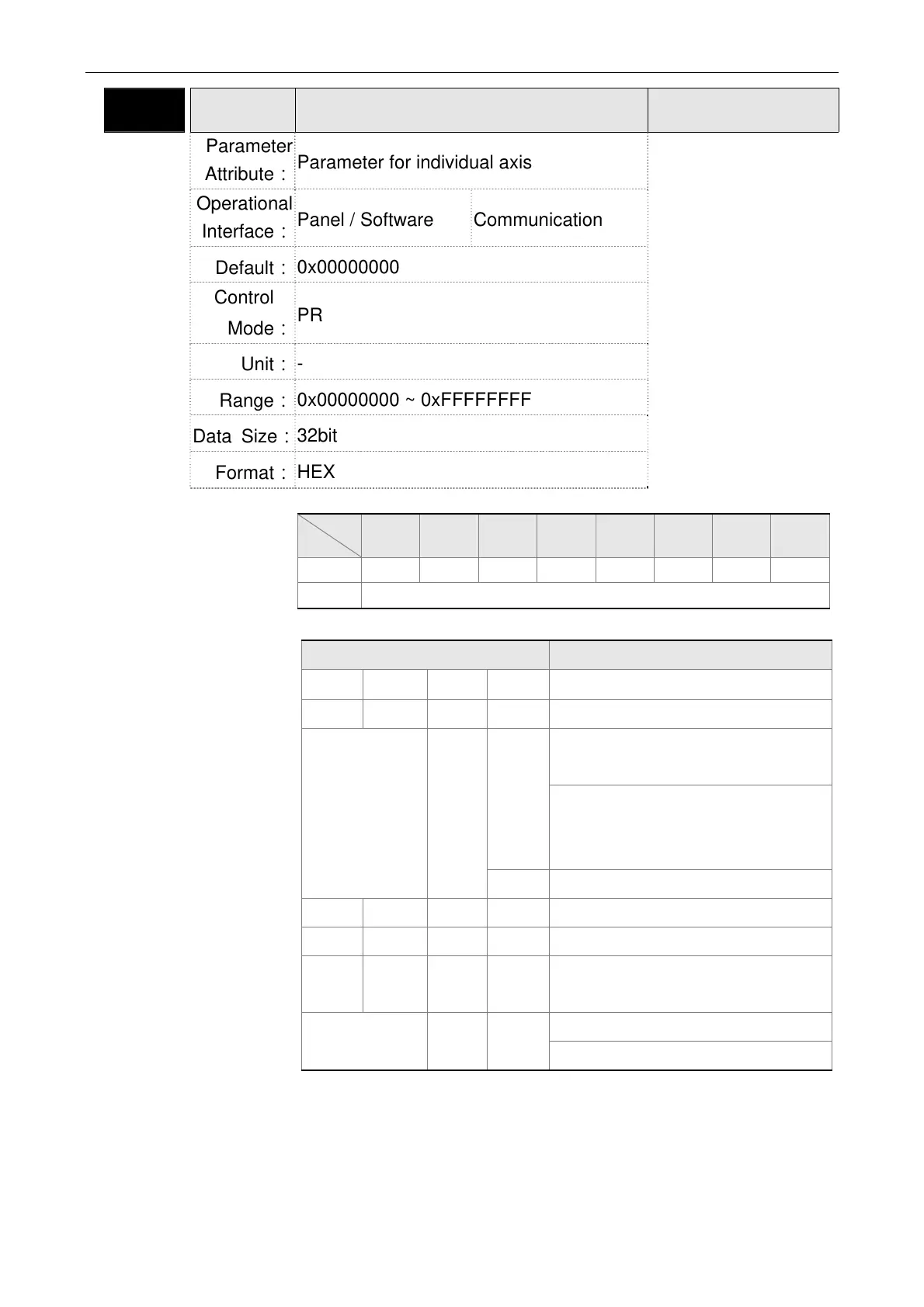 Parameter for individual axis