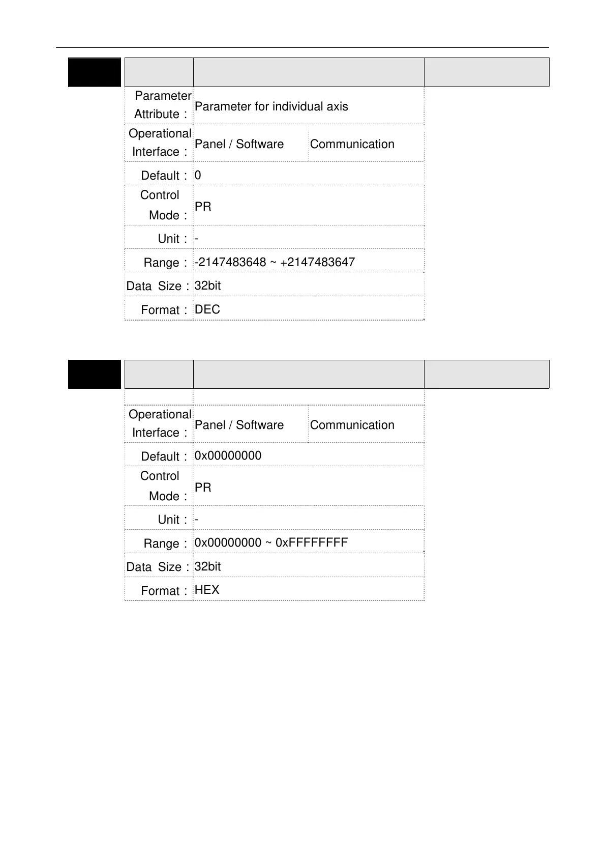 Parameter for individual axis
