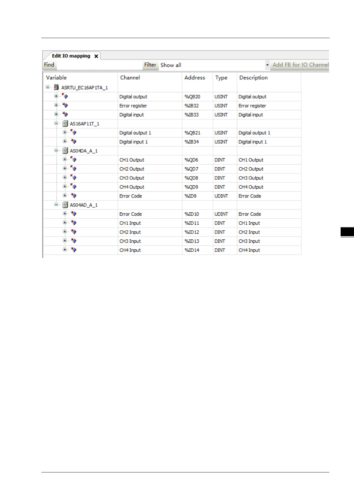 page and the mapping devices and variables for the right-side extension modules on the Module I/O mapping