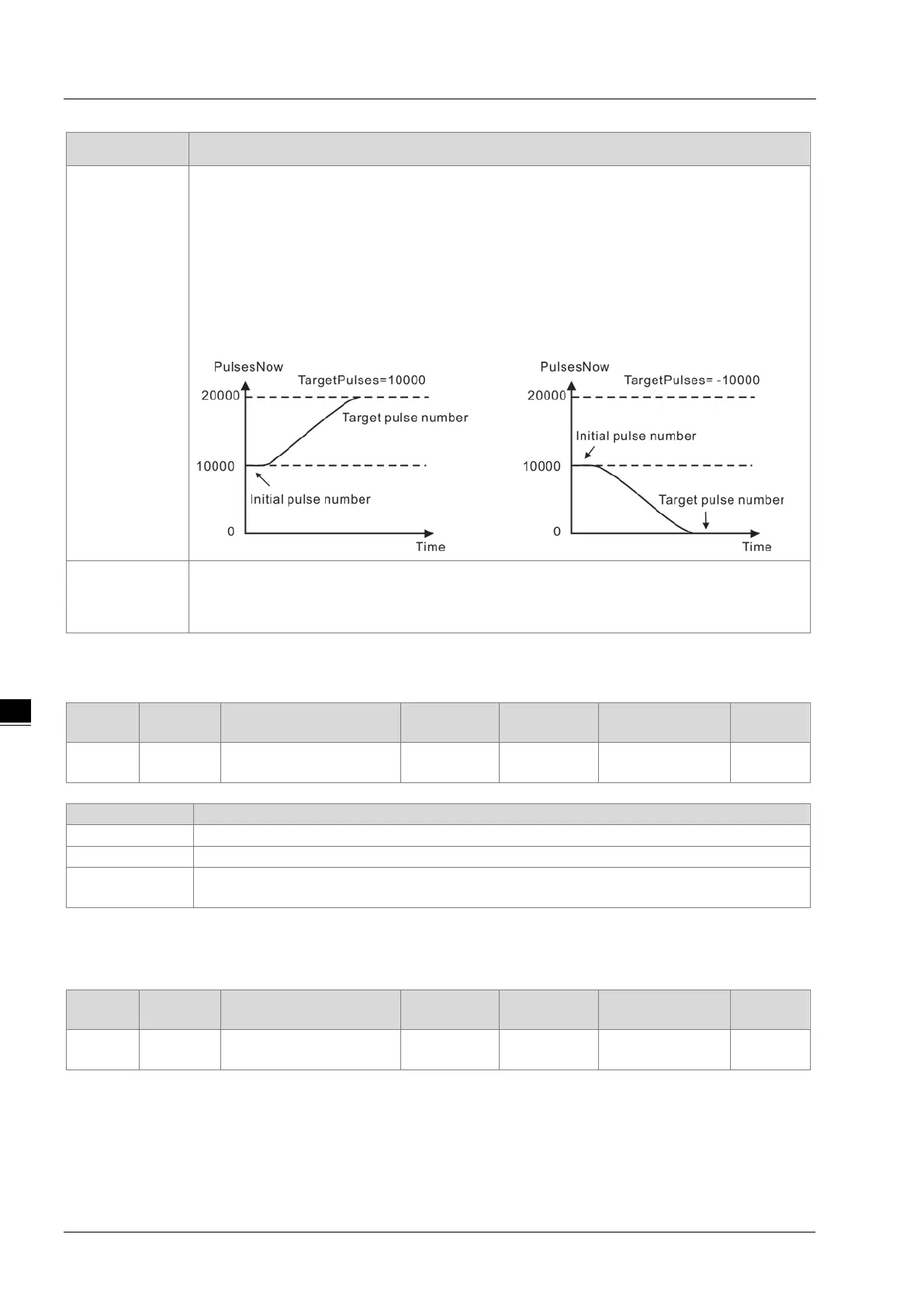 CurrentPulses) when the pulse output starts and the target pulse number (Pulse output