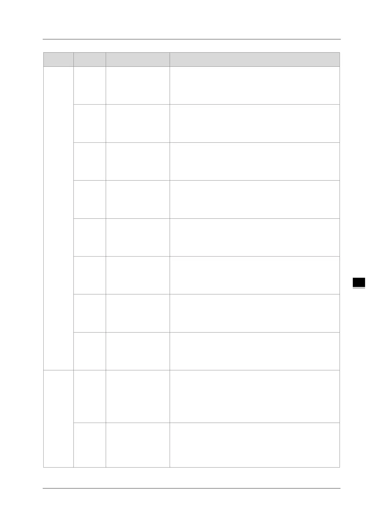 Index Subindex Parameter name Description