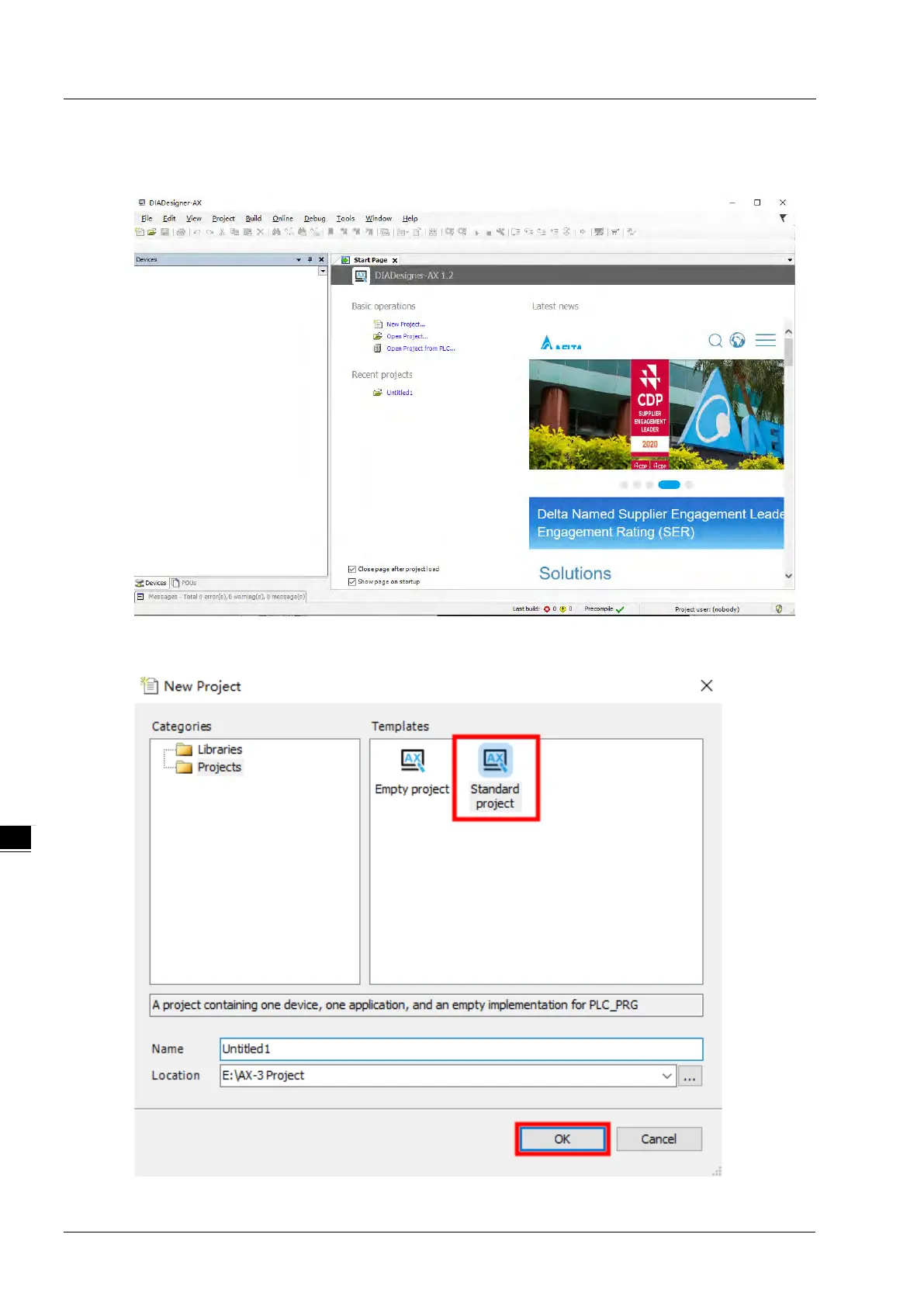 1. Download DIADesigner-AX software from Delta official website, install it and then start the software.