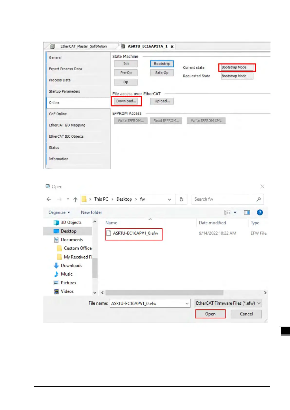 Select an online file for updating the firmare from the new interface, and then click the "Open" button.