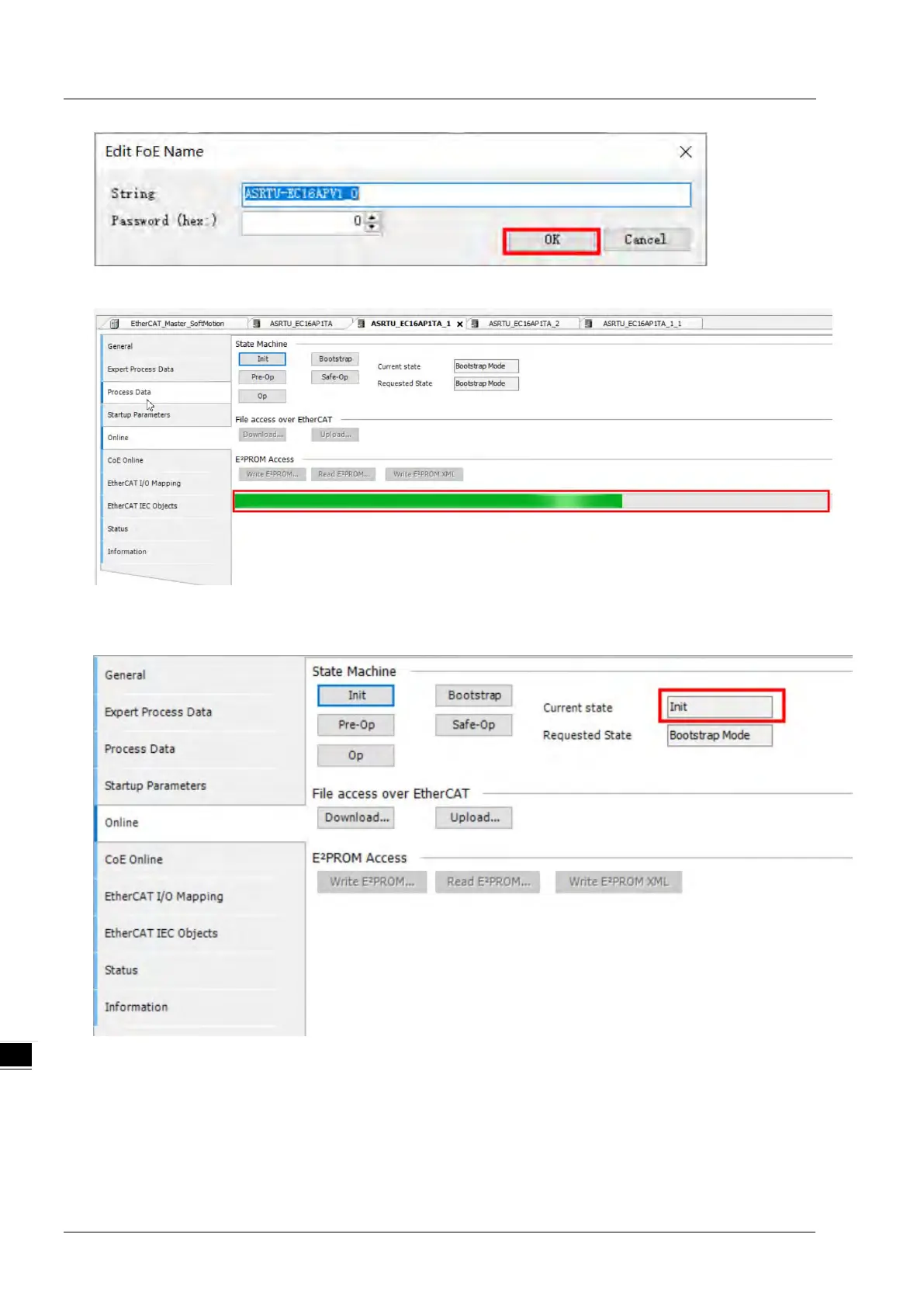 ASRTU-EC16AP1TA will automatically restart, and the current status will change to "Init".