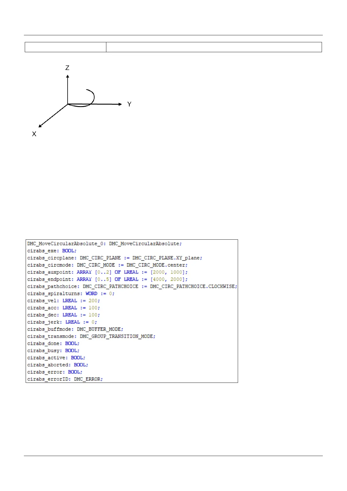 In this example, the instruction performs the circular interpolation from current positon (1000, 3000) until the