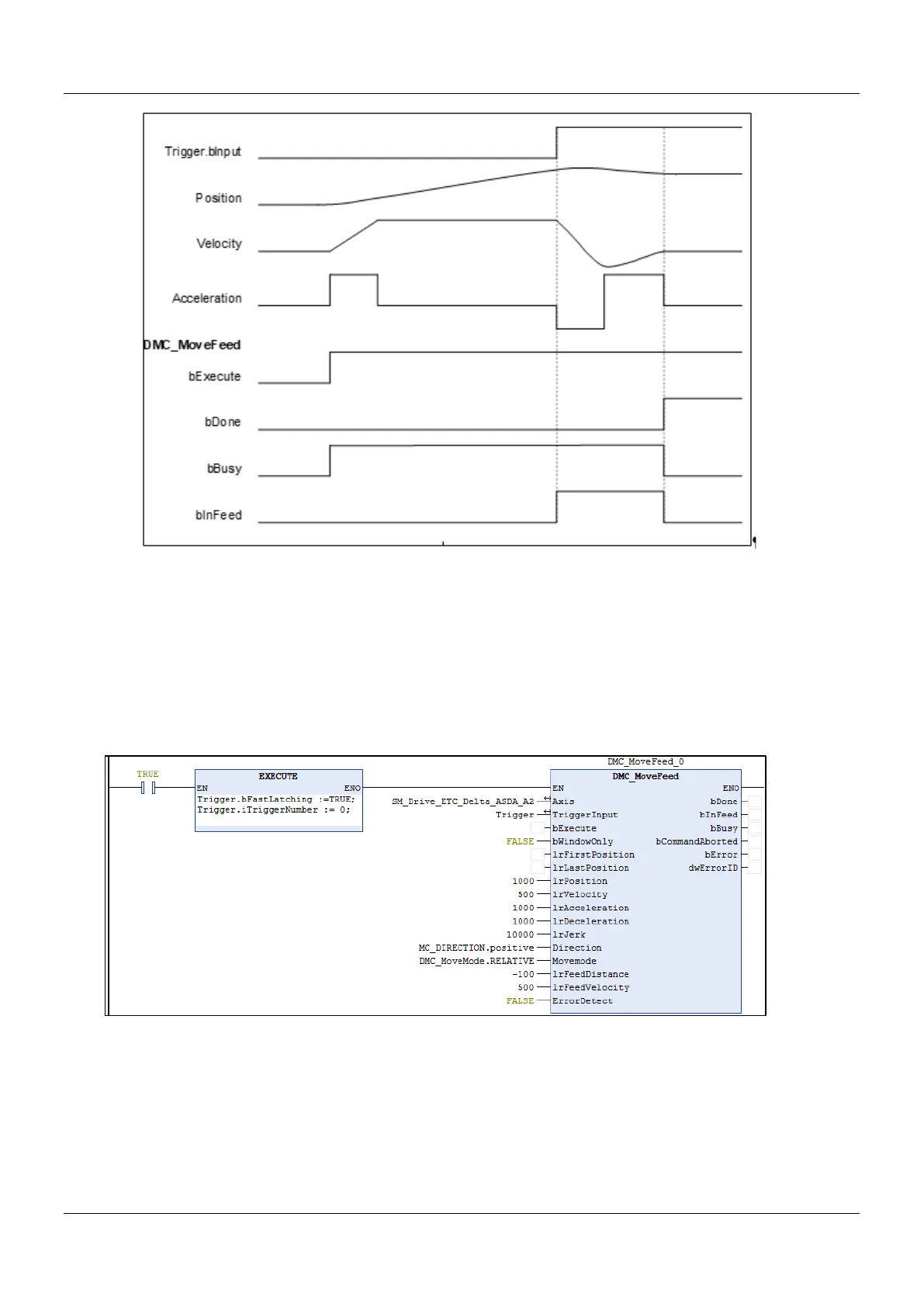 Example to illustrate the execution result of using DMC_MoveFeed in drive mode.