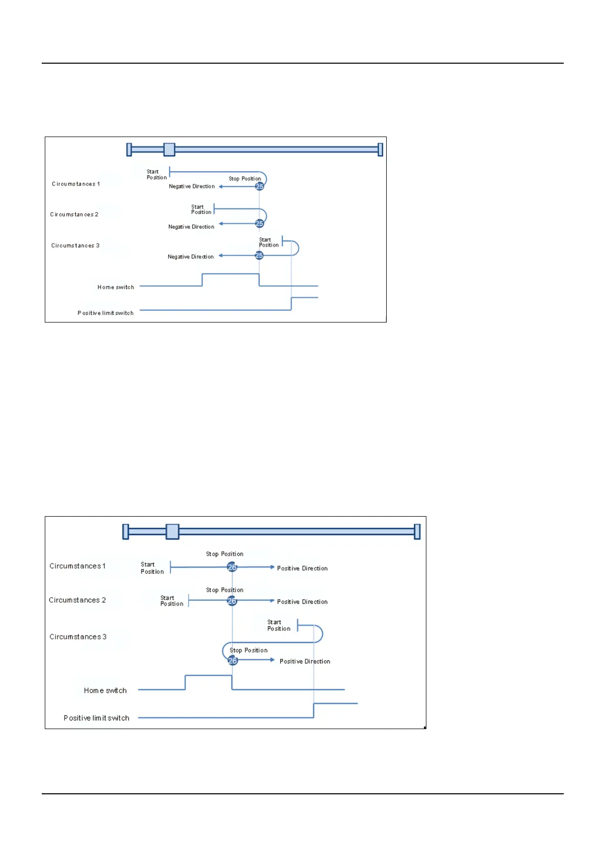 Circumstance 1: MC_Home instruction is run while the home switch is OFF and the axis starts to move in the positive