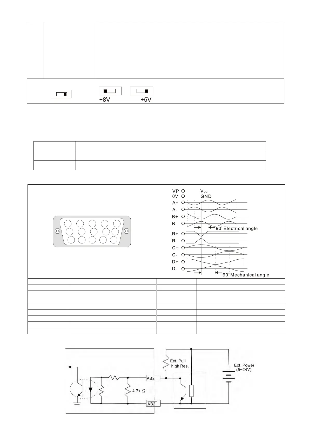 input voltage of open collector is 24V, the power of encoder needs to be connected externally. Refer to