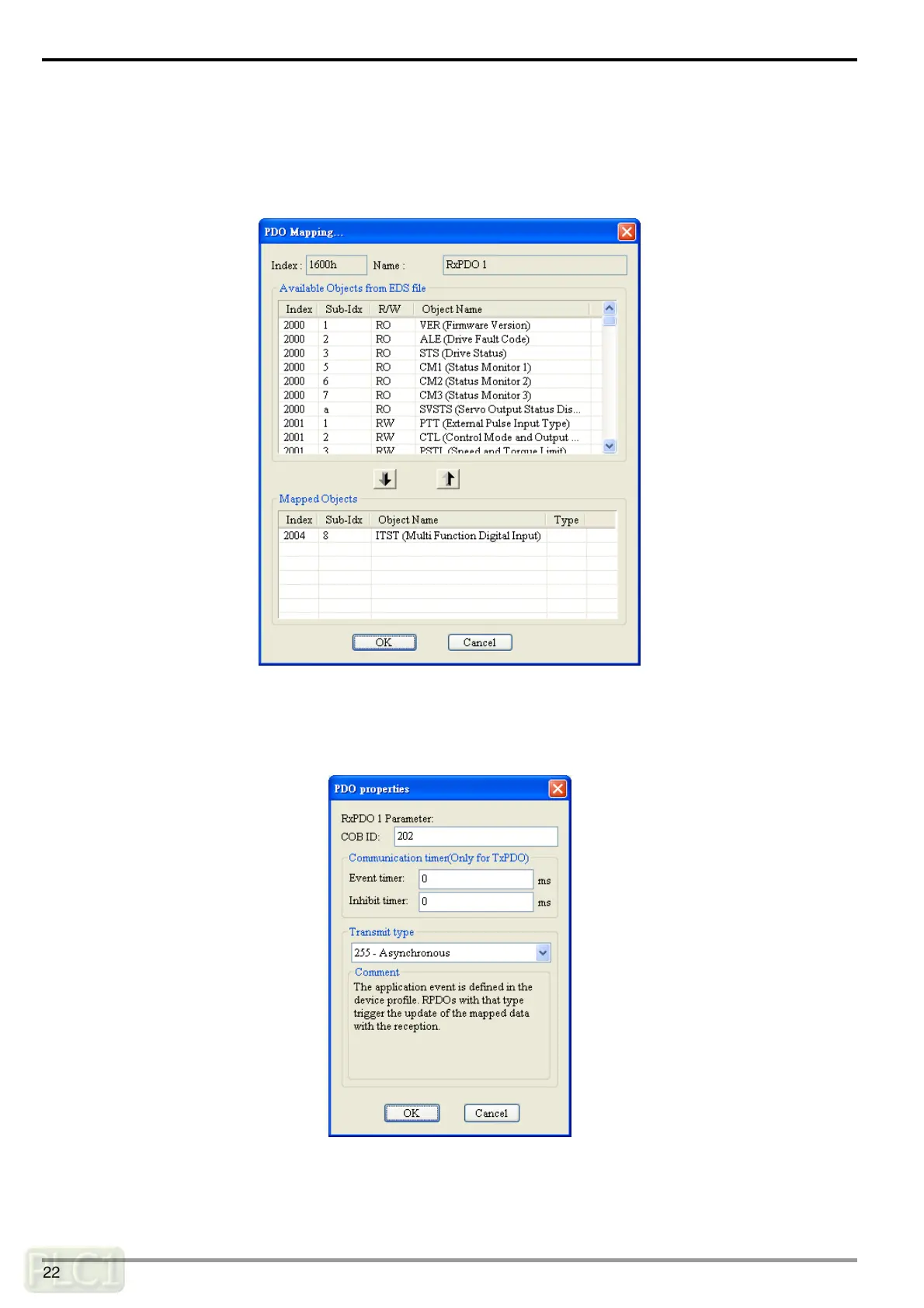 on “PDO Mapping”, and you will enter the “PDO Mapping…” page as below. You can add the parameters in