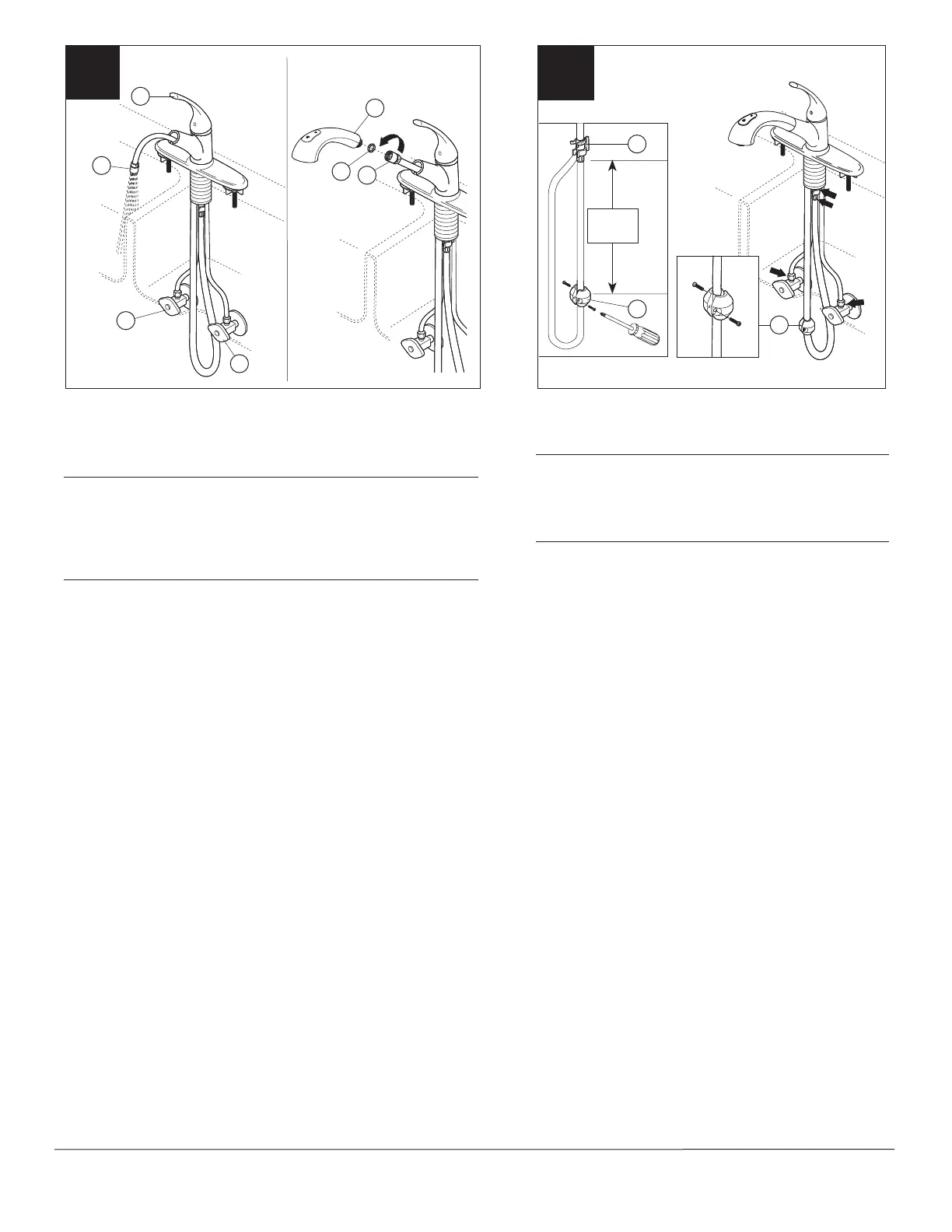 down into the sink. Turn faucet handle (2) to the full on mixed position. Turn on hot