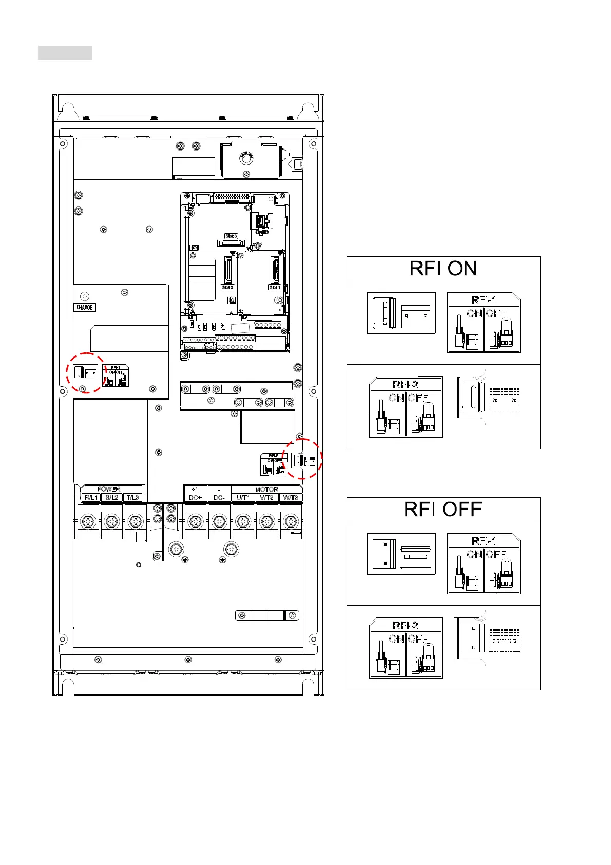 By switching the position of the RFI jumper to control ON / OFF.