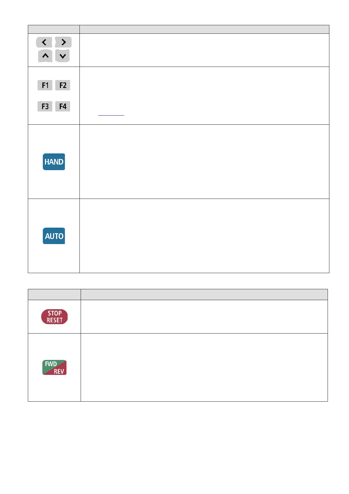 2. Press HAND key at stop status, the setting will switch to hand frequency source and hand