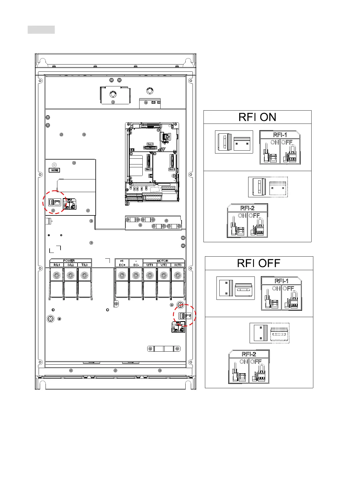 By switching the position of the RFI jumper to control ON / OFF.