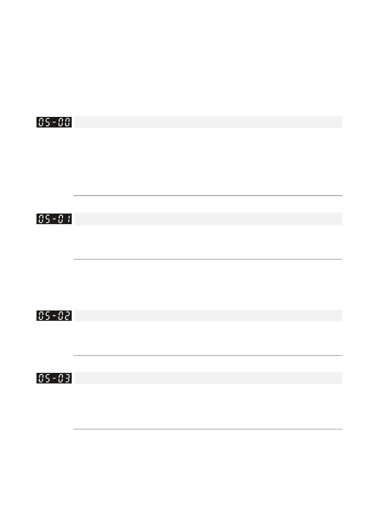 For example: Pr.01-01=20 Hz, Pr.05-04=2, according to the equation 120 x 20 Hz / 2 = 1200 rpm