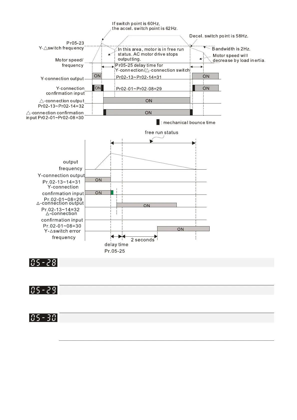 Pr.05-28–05-30 record the amount of power consumed by the motors. The accumulation begins