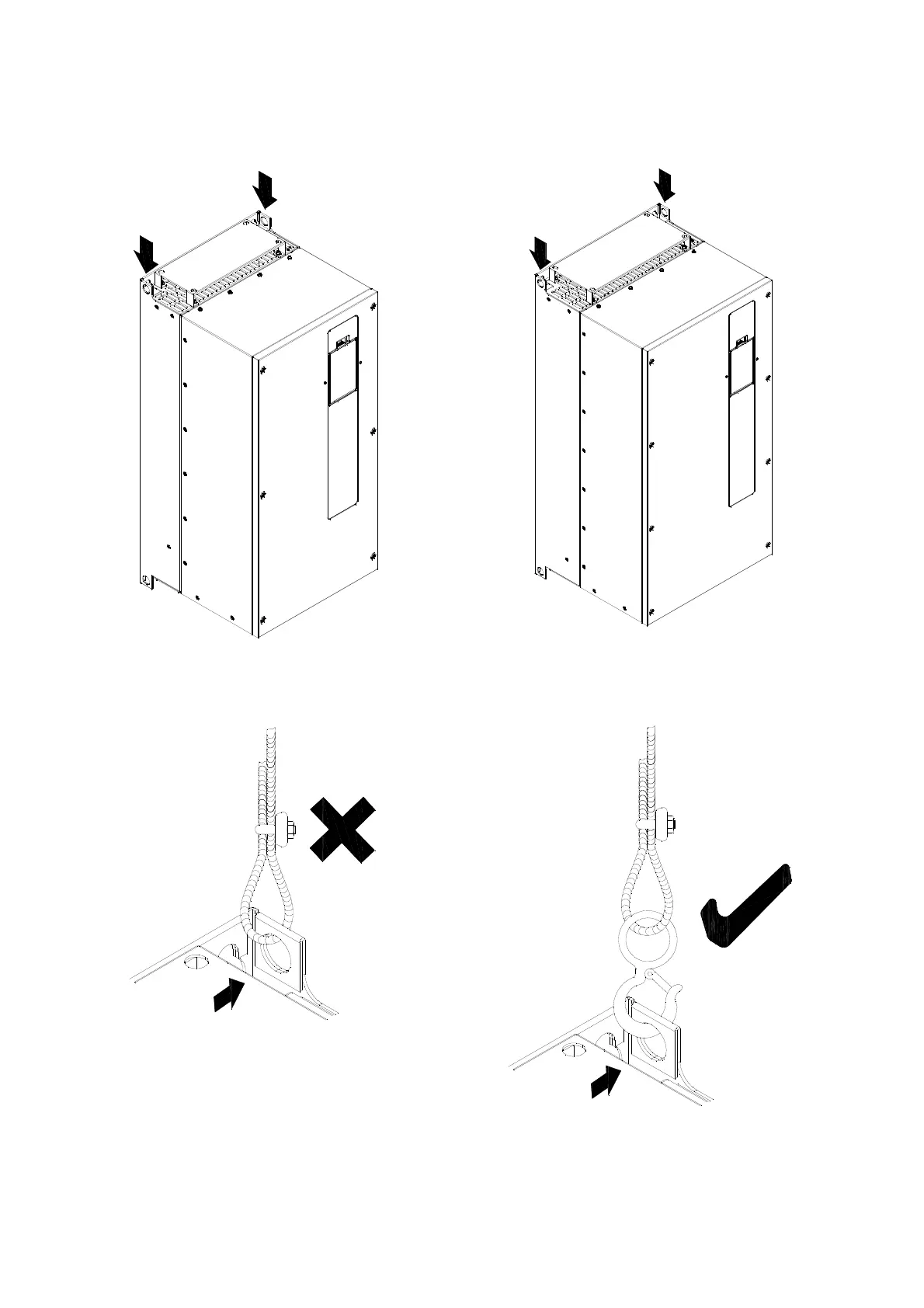 Ensure the lifting hook properly goes through the lifting hole, as shown in the following diagram.