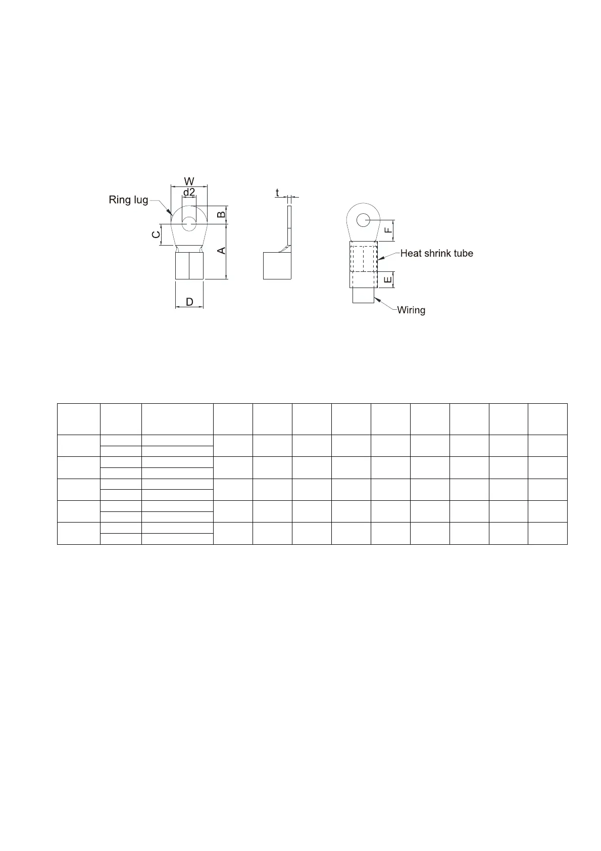 Use the specified ring lug for main circuit terminal wiring. See figure 5-5 and figure 5-6 for ring lug