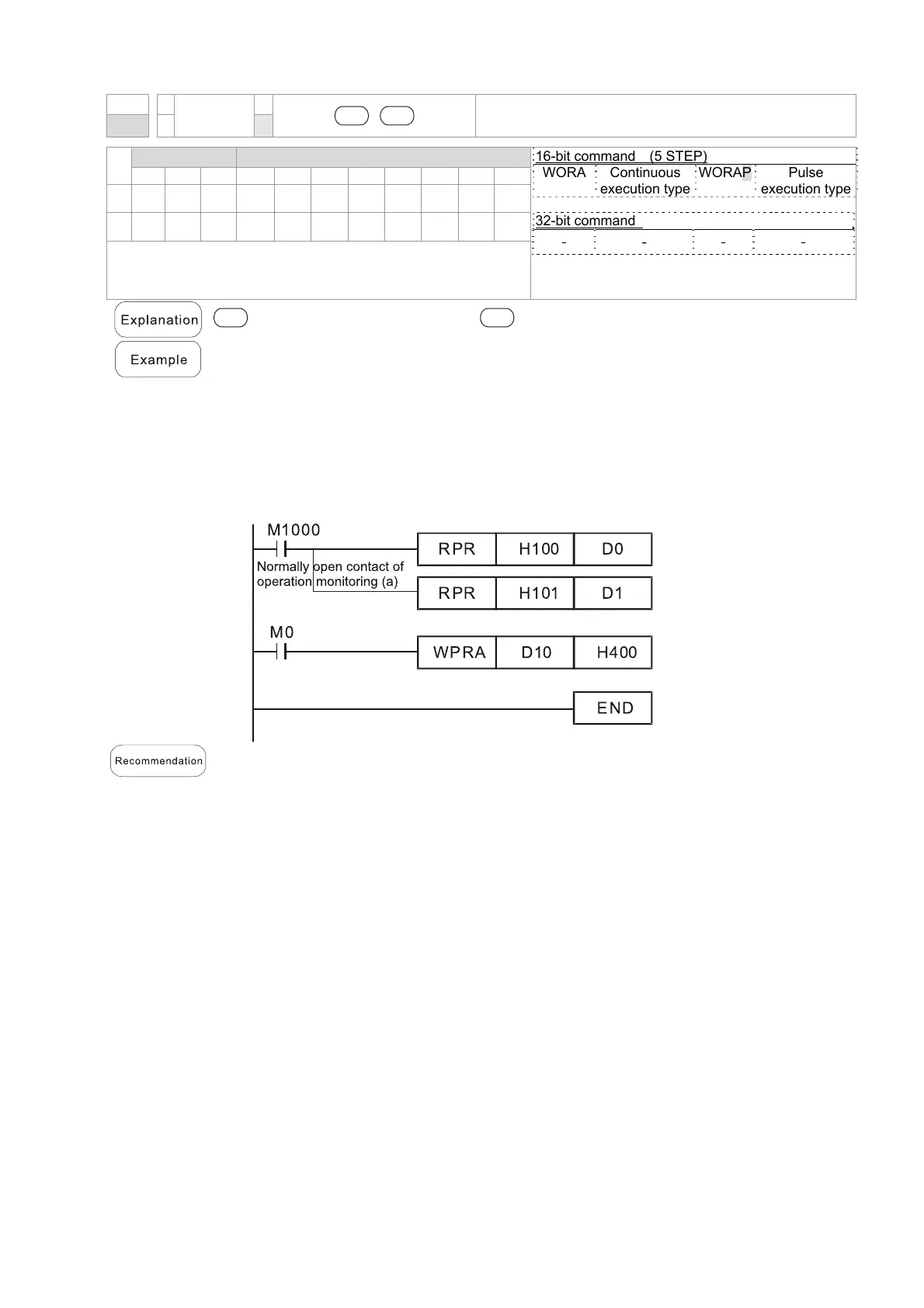 The WPR command does not support the write-in of 20XX address, but the RPR