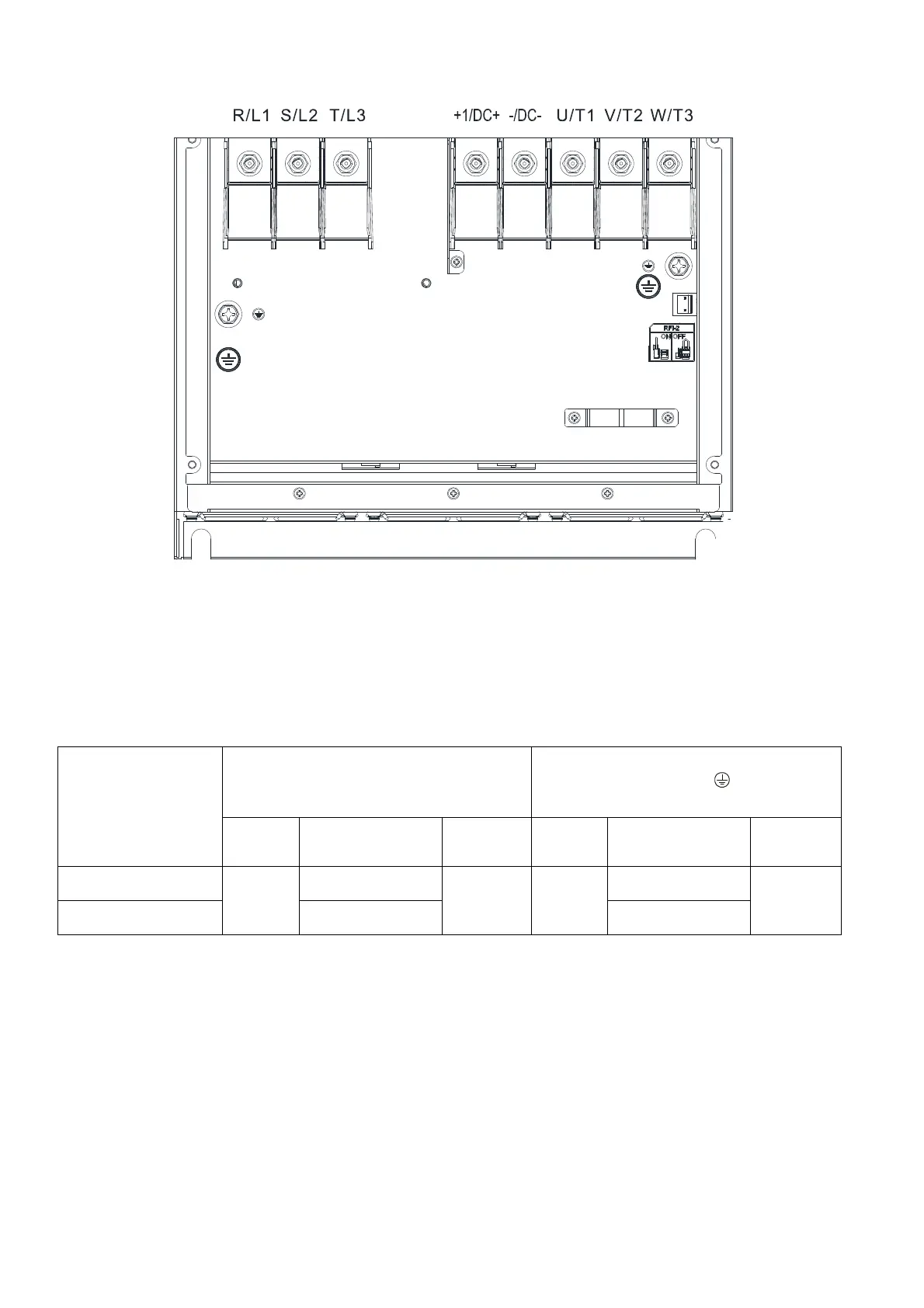 R/L1, S/L2, T/L3, DC+, DC-, U/T1, V/T2,