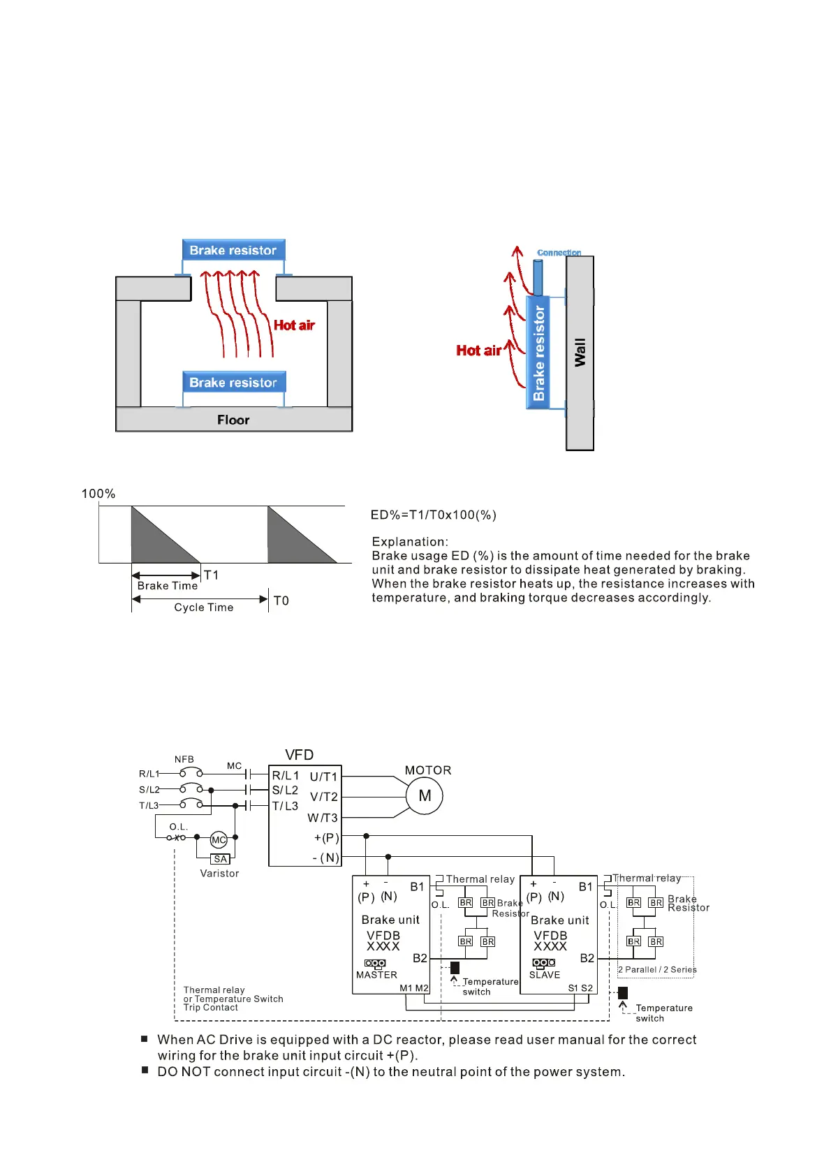 Do not install brake resistors on another brake resistor or above any hot air source .