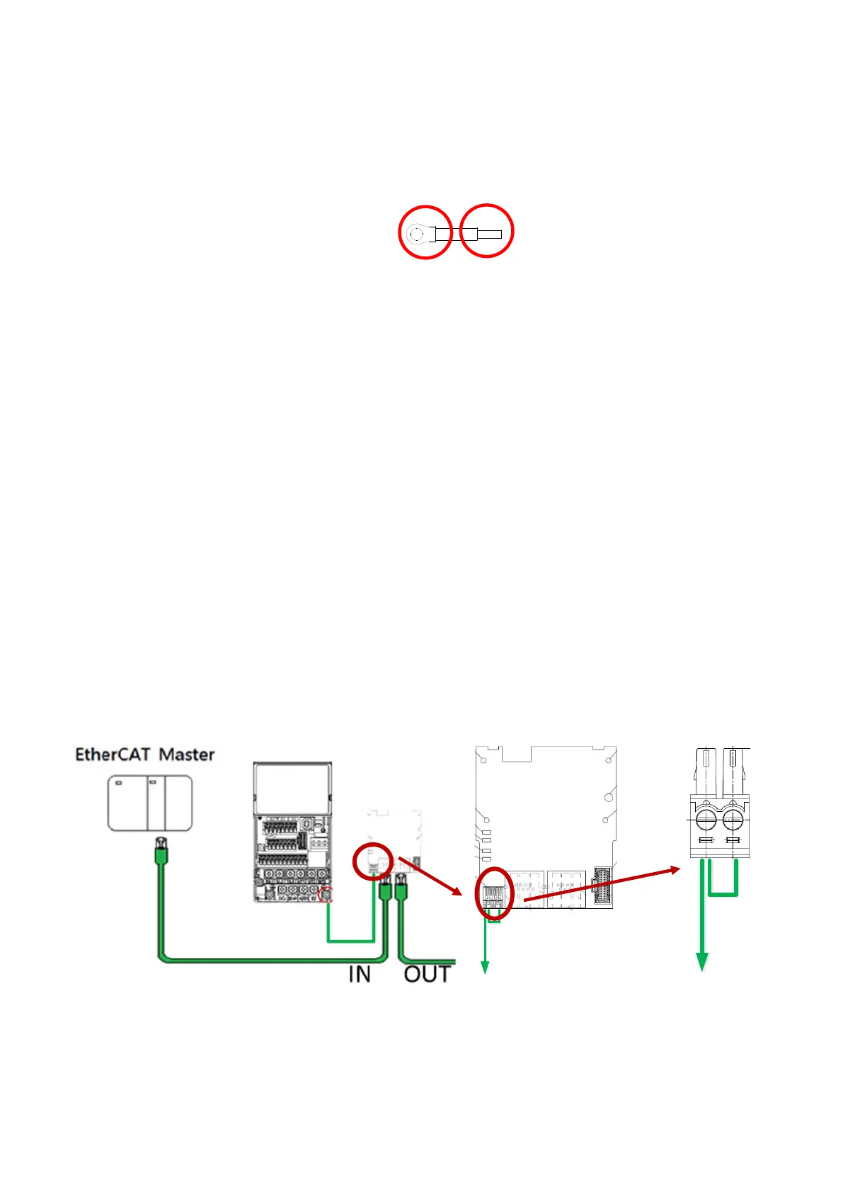 in Fig.2-8. The A end of the grounding wire connects to the drive’s PE, as the circles