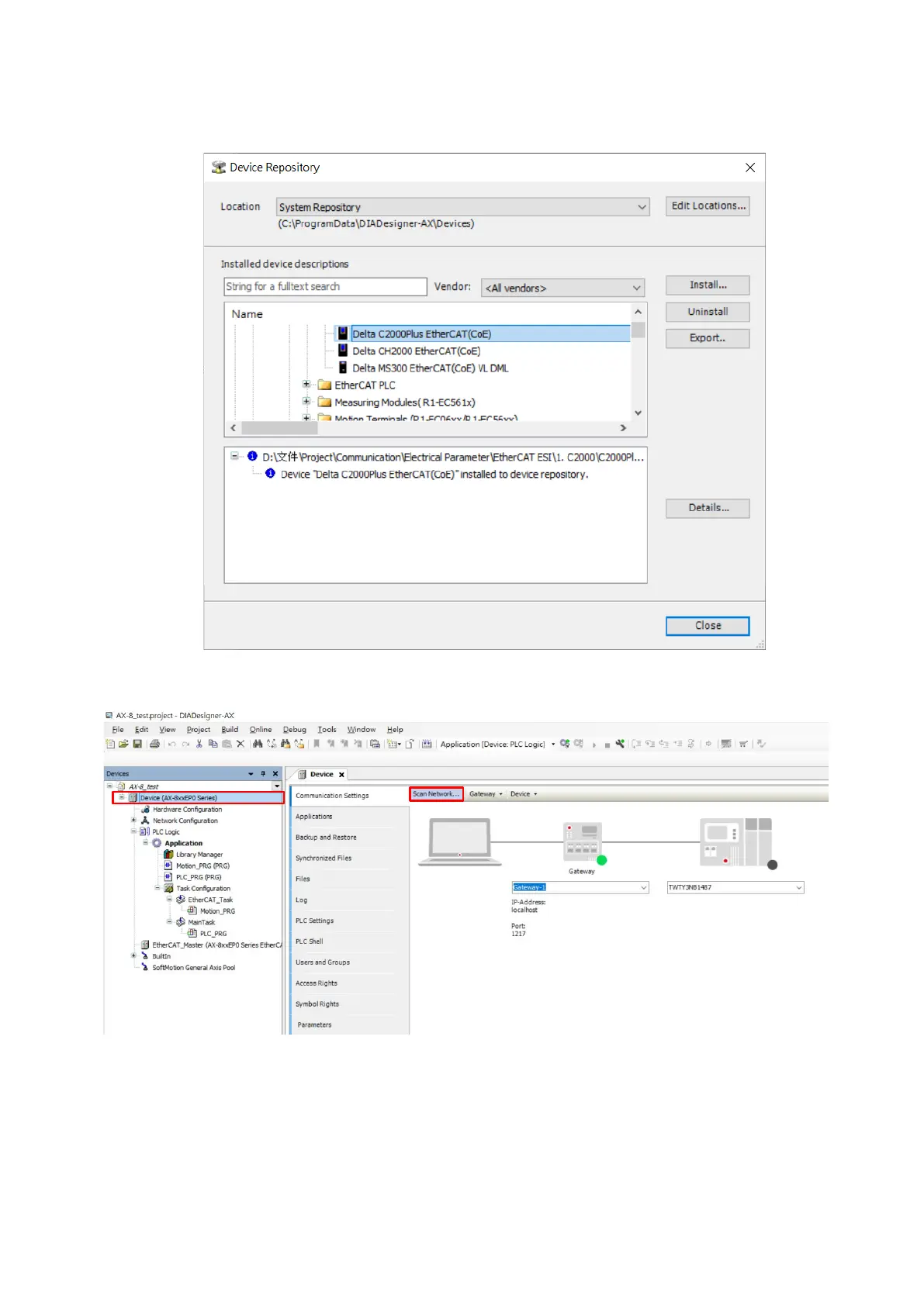 8. Double click on Device (AX-8xxEP0 Series), then click Scan Network.
