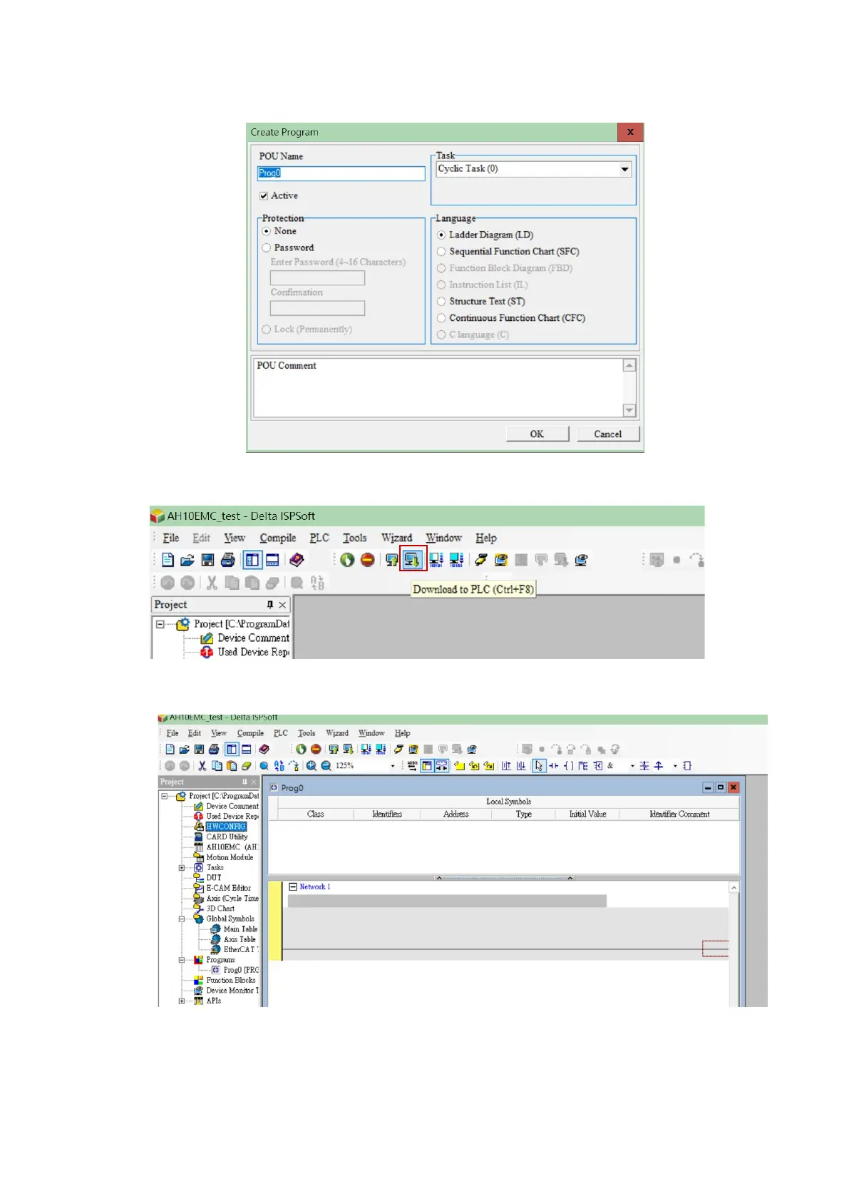 8. Click the Download to PLC button, as soon as the PLC starts to run, the connection between the