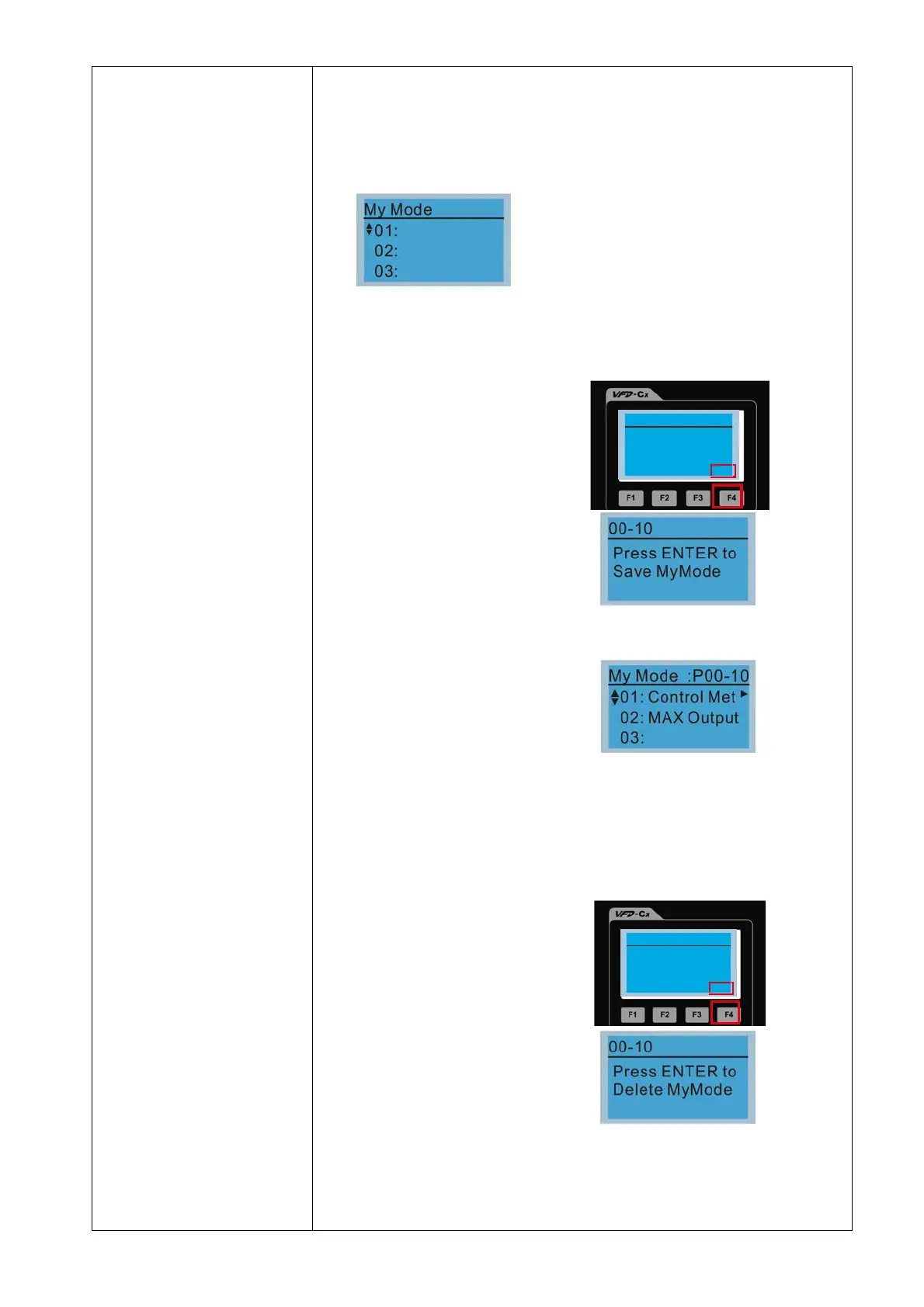 3. To delete a parameter, go to “My Mode”