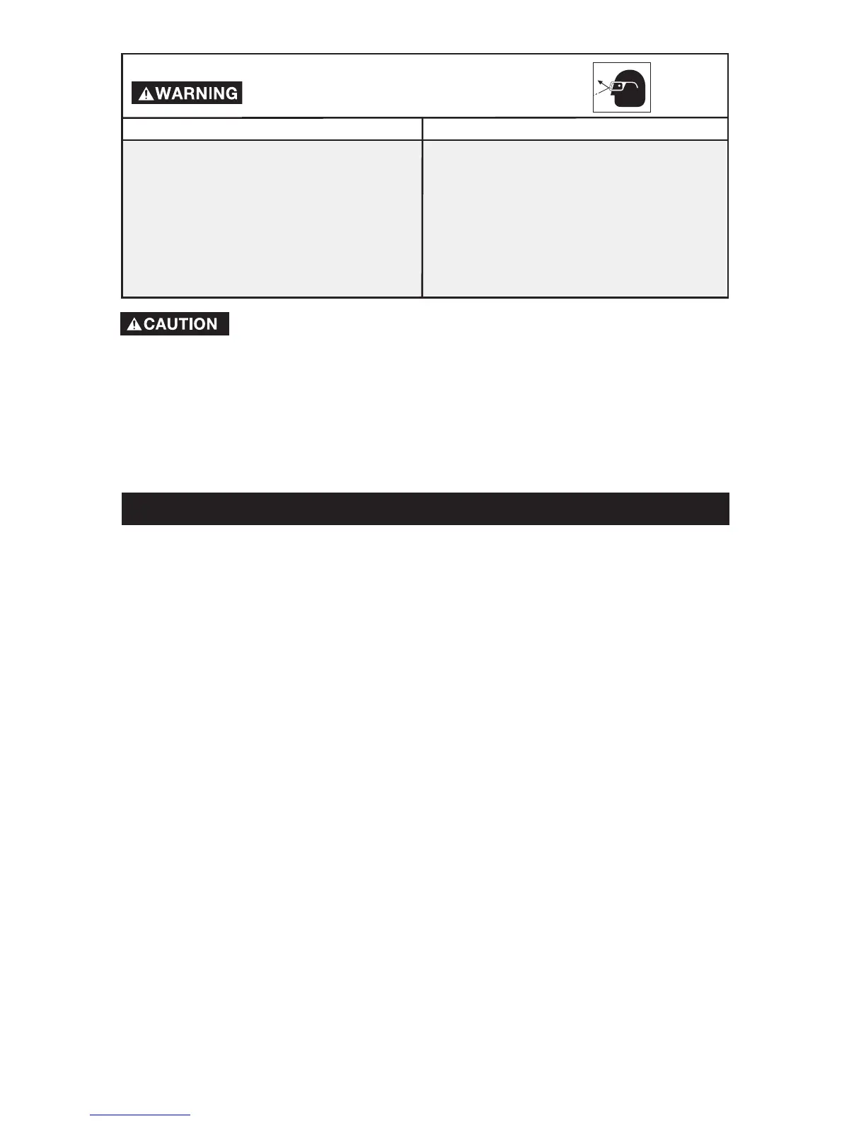 • Always wear ANSI approved Z87 safety