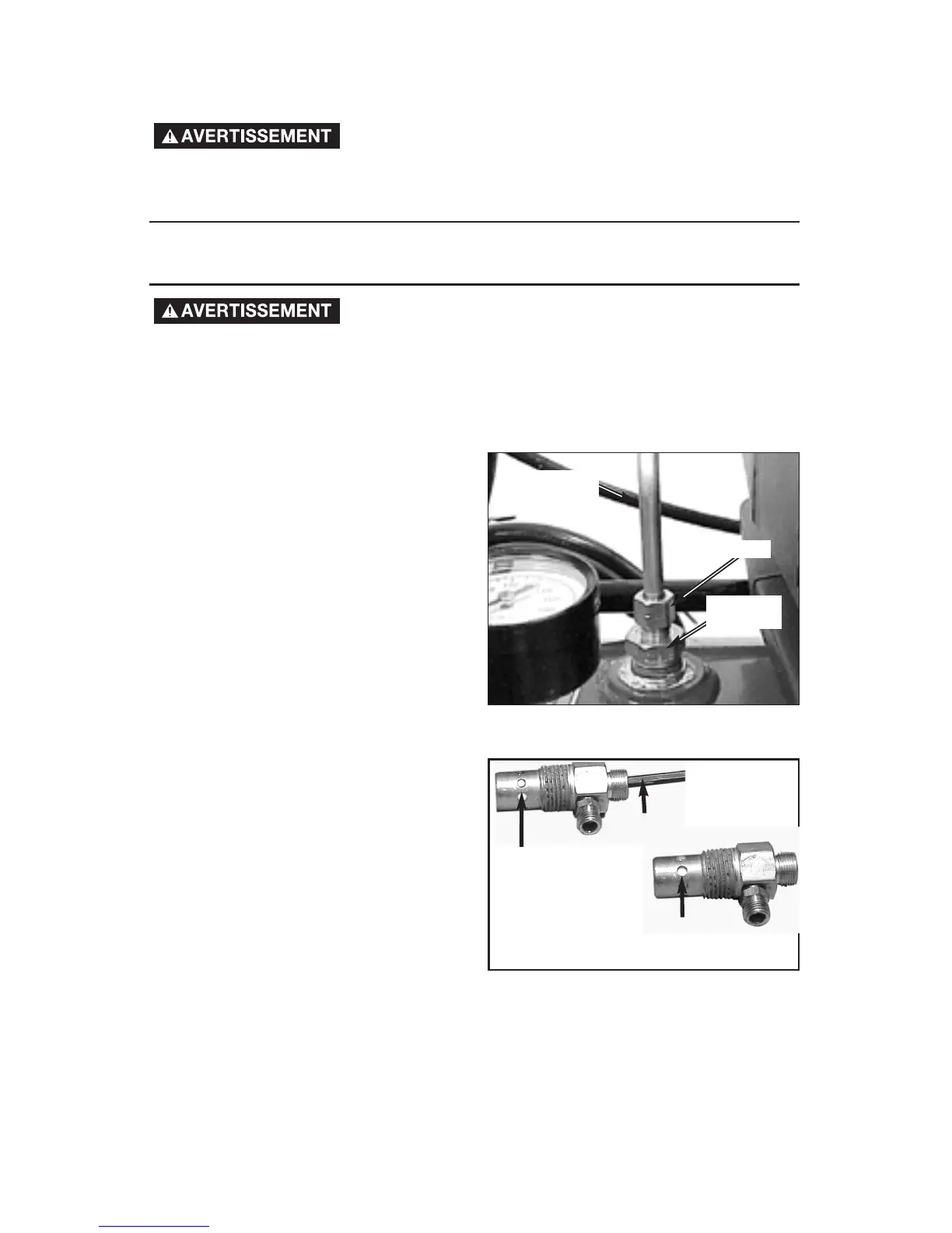 débranchez le compresseur et purgez tout l'air pressurisé.