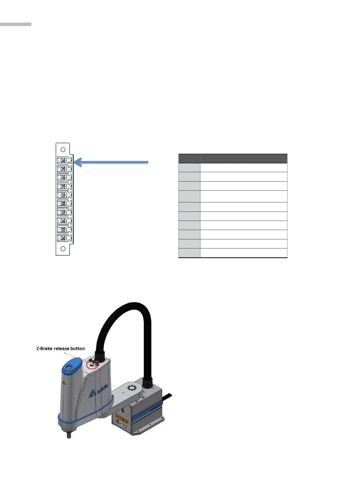 by SCARA J3 vertical axis and the other is for use by the button to release motor brake on J3 axis.